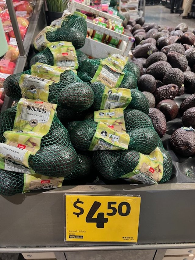 1kg packs at $4.49ea. No Avocado 5pk stocked.