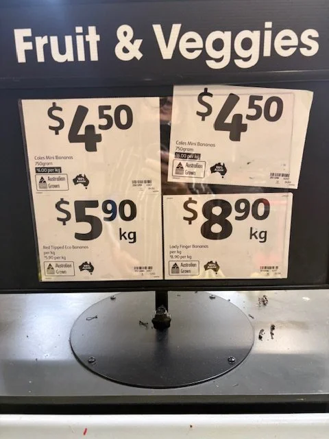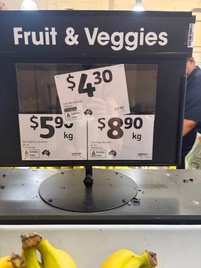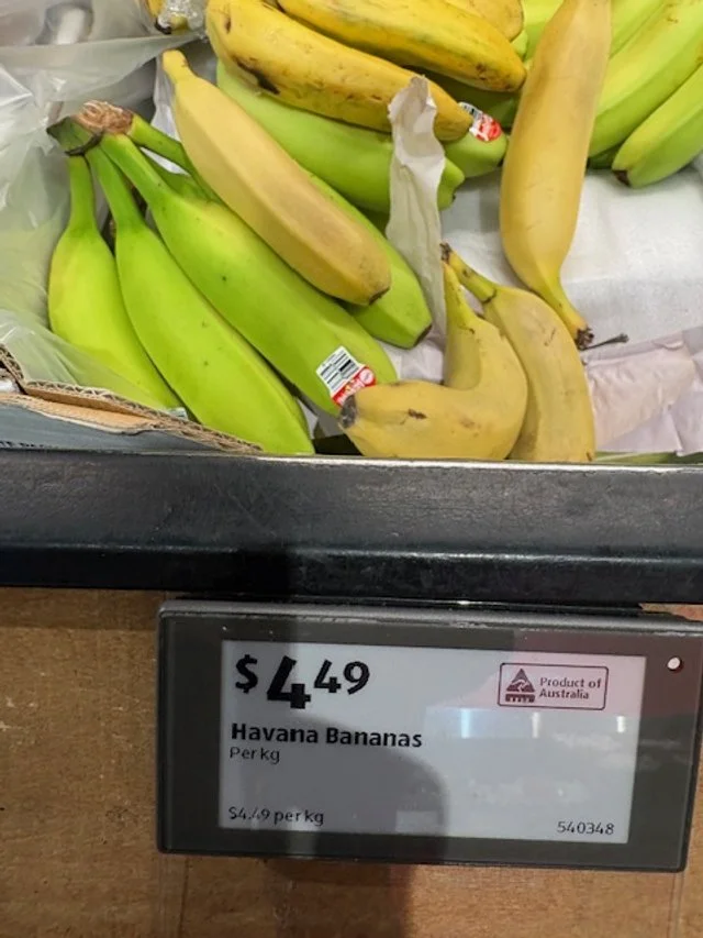 Havana bananas at $4.49/kg - needed restocking.