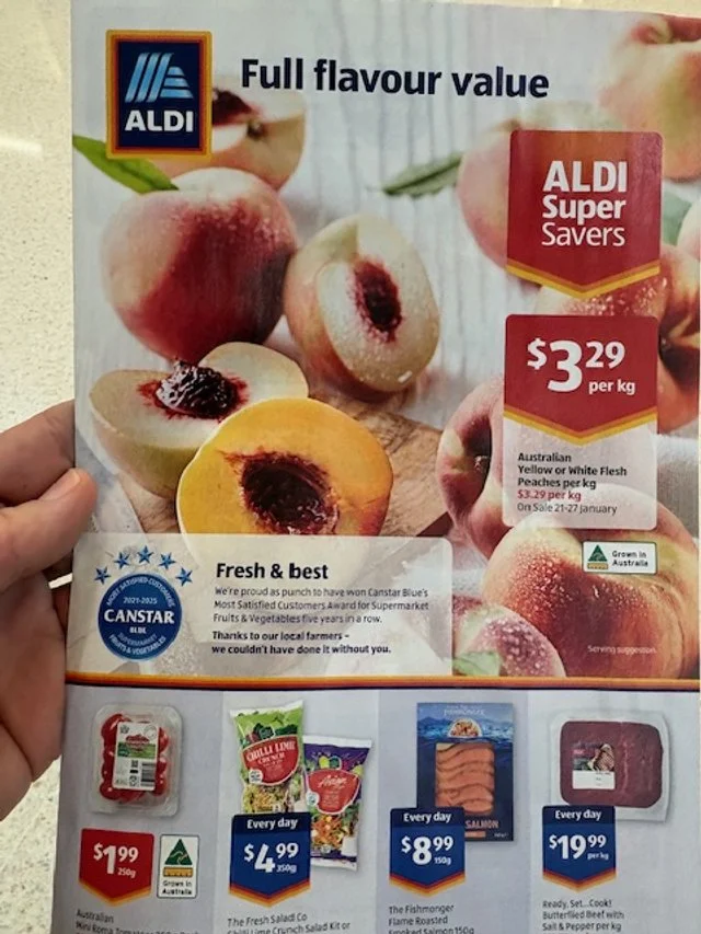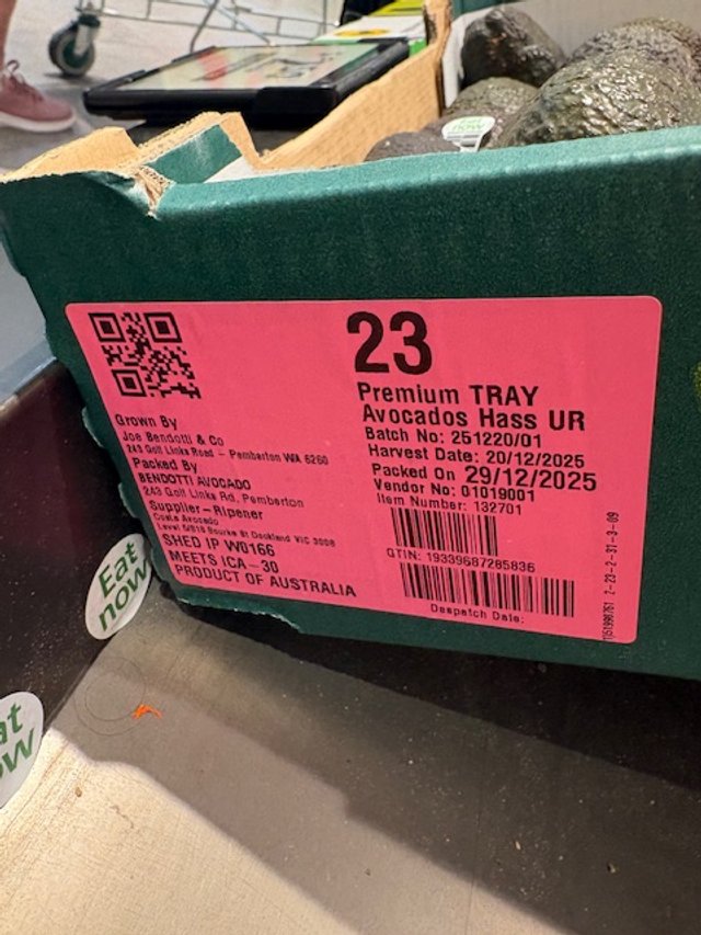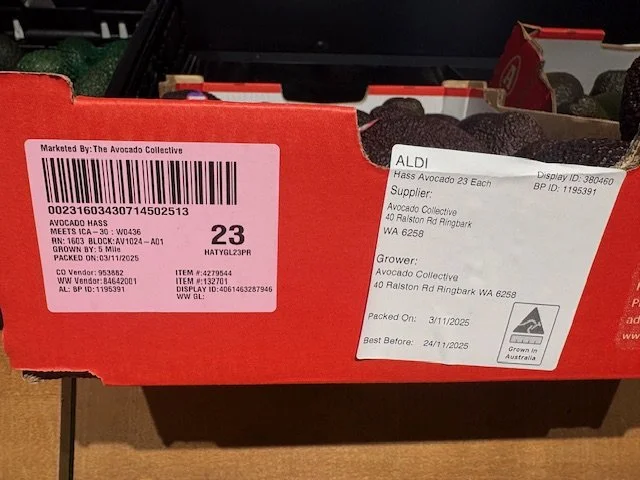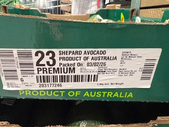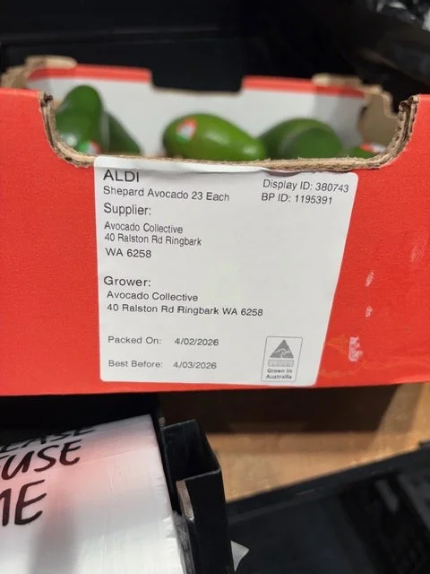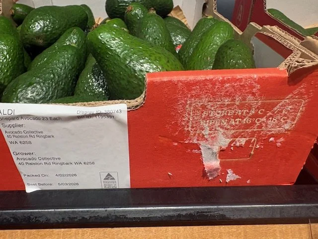 Au Dacia NQLD Ct 23 Shepard Avos supplied by Avocado Collective ticketed at $1.49ea packed 13th Feb - so fruit age is 19 days old. Also note Aldi catalogue this week features “Autumn Delights” which they clearly include the Shepard Avocado and feature recipes etc.