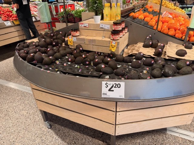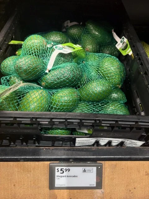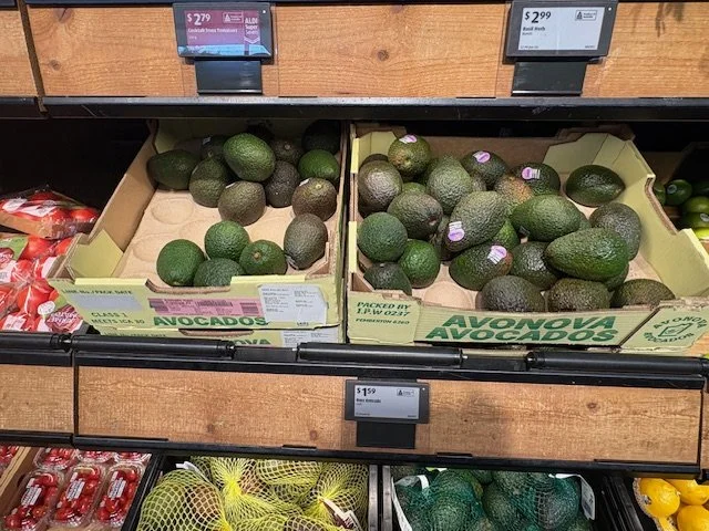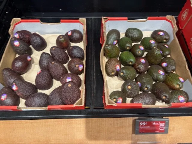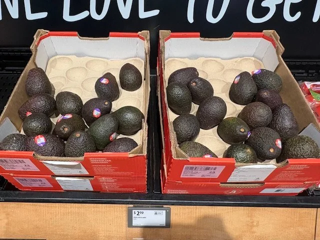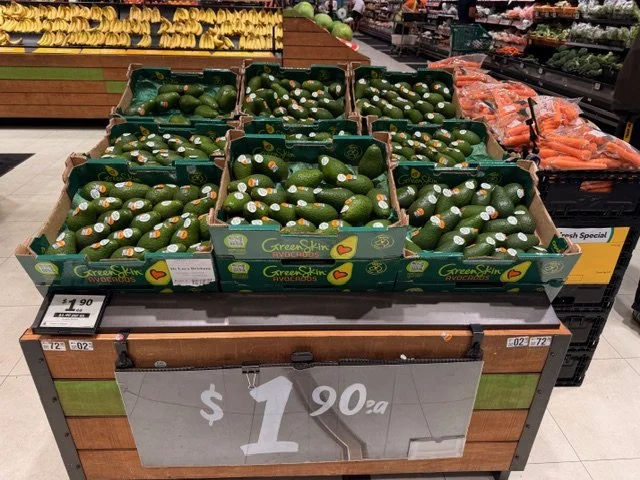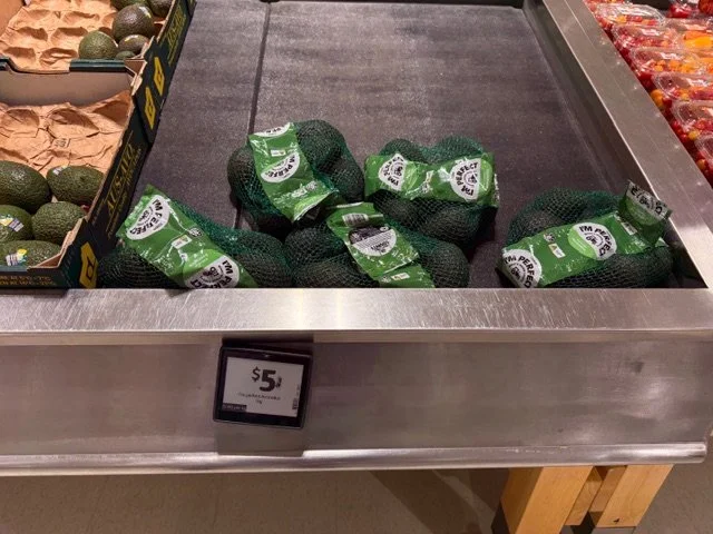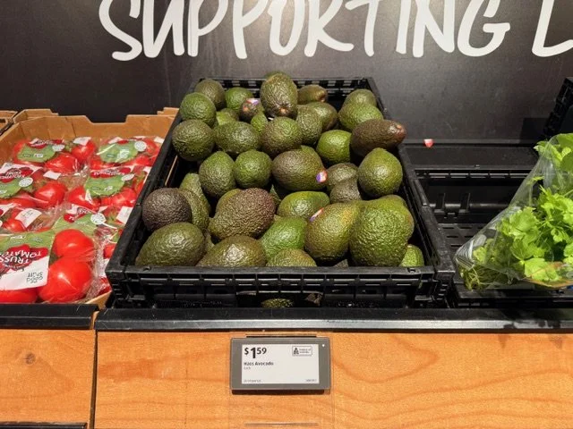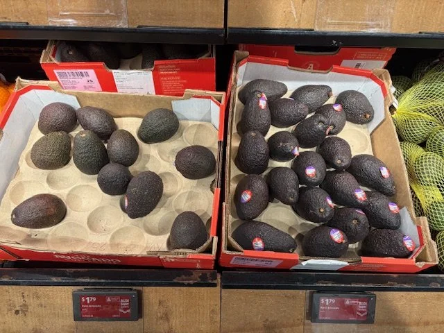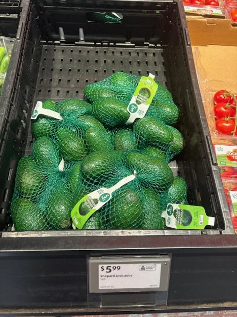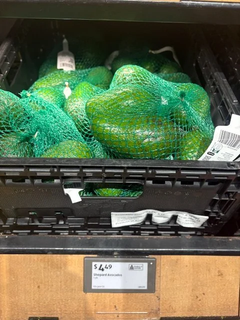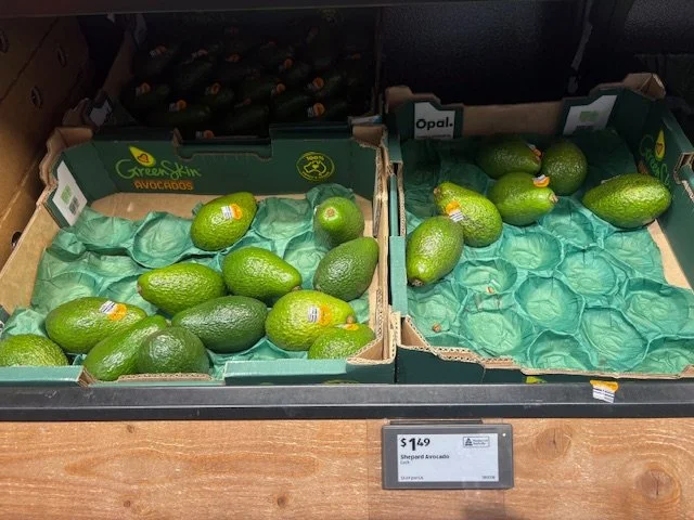Shepard Avocados priced $1.50ea. Three separate display areas for the loose Shepards at this store, two of which were relatively close to the produce department entry point. Rock Ridge Shepards and last of the Avocado Collective Hass on display - Hass also selling at $1.50ea.