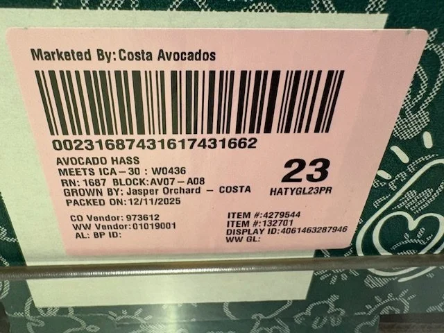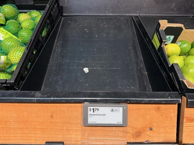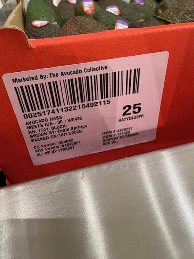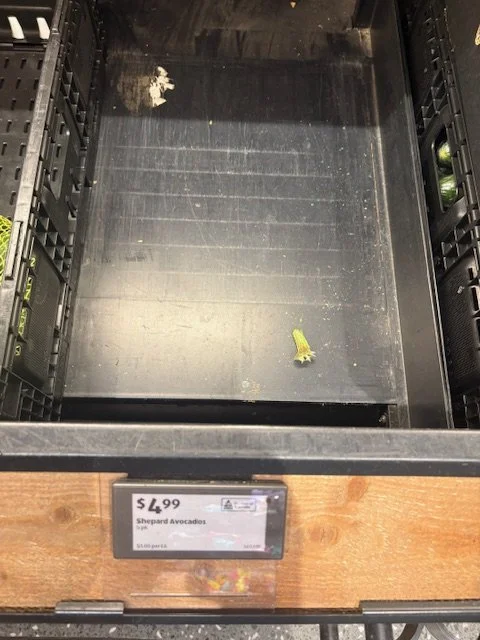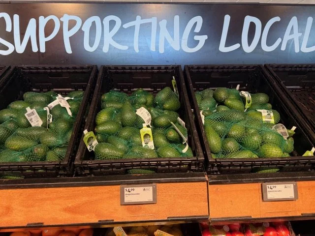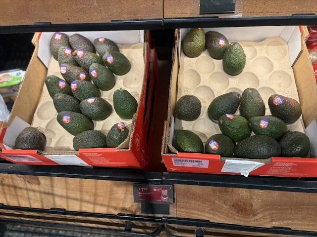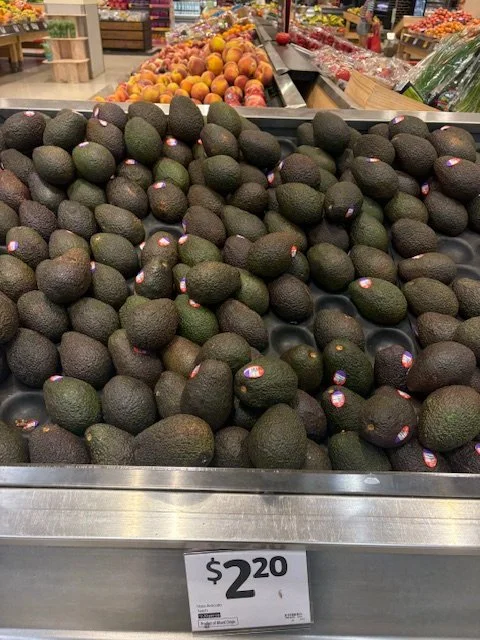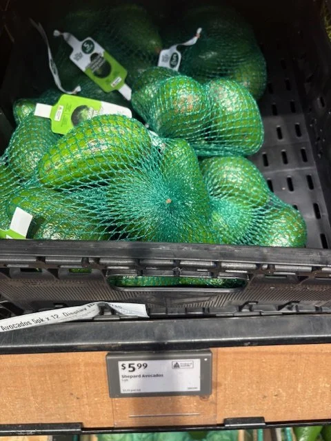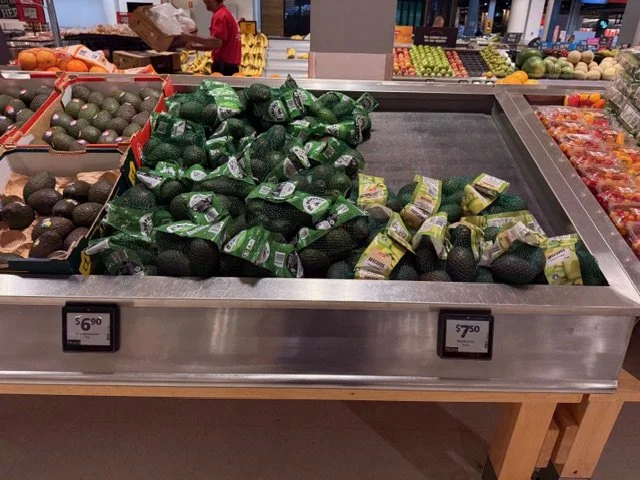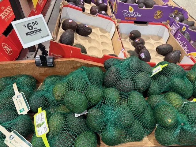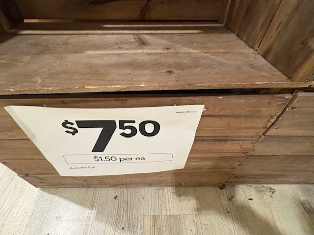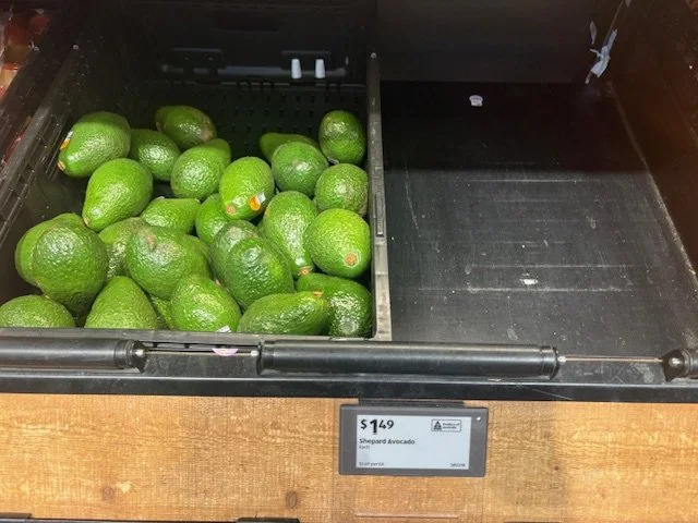 Shepard Avocados priced $1.50ea. Three separate display areas for the loose Shepards at this store, two of which were relatively close to the produce department entry point. Rock Ridge Shepards and last of the Avocado Collective Hass on display - Hass also selling at $1.50ea.