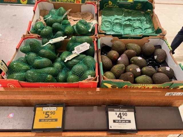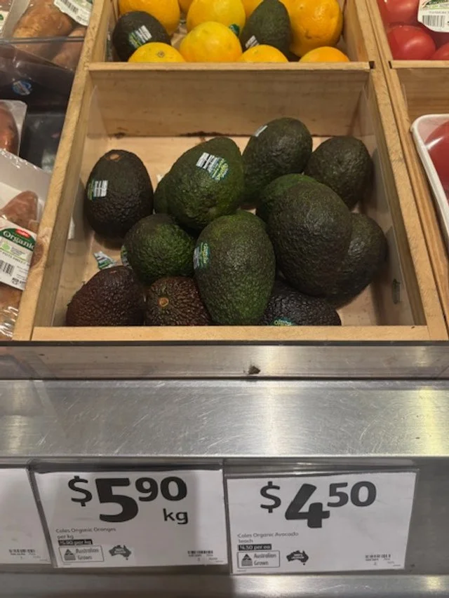 Organic avos at $4.50ea seemed to be developing a skin mould.