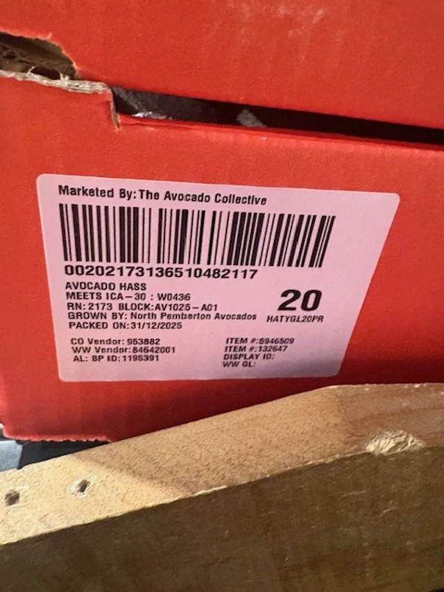 Ct 20 Shepard Avocados priced $1.50 supplied by Rockridge Fresh packed 21st Feb so fruit was 12 days old.