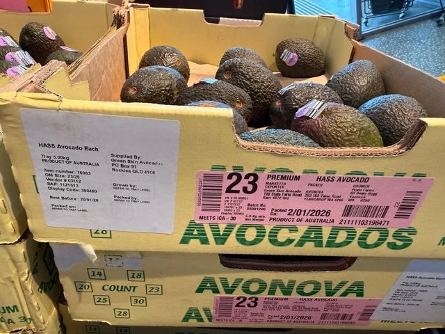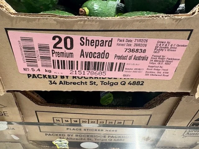In terms of Avocado retailing in the major supermarkets in Qld this week, we saw hass pricing as follows - Aldi had Shepard’s at $1.49 each; Coles Qld stores visited had Hass avos at $1.50 each; and Woolworths were retailing Shepards at $1.20ea.