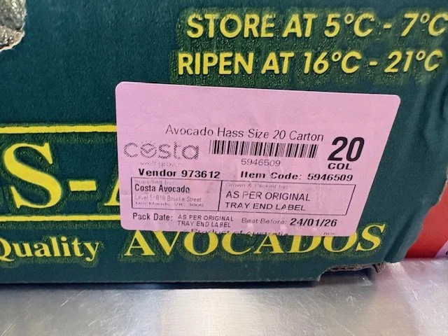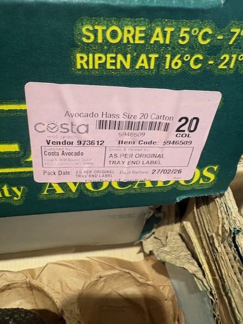 Costa supplied WA Hass Avocados Ct20 priced $1.50ea packed 20th Feb so fruit is 12 days old.