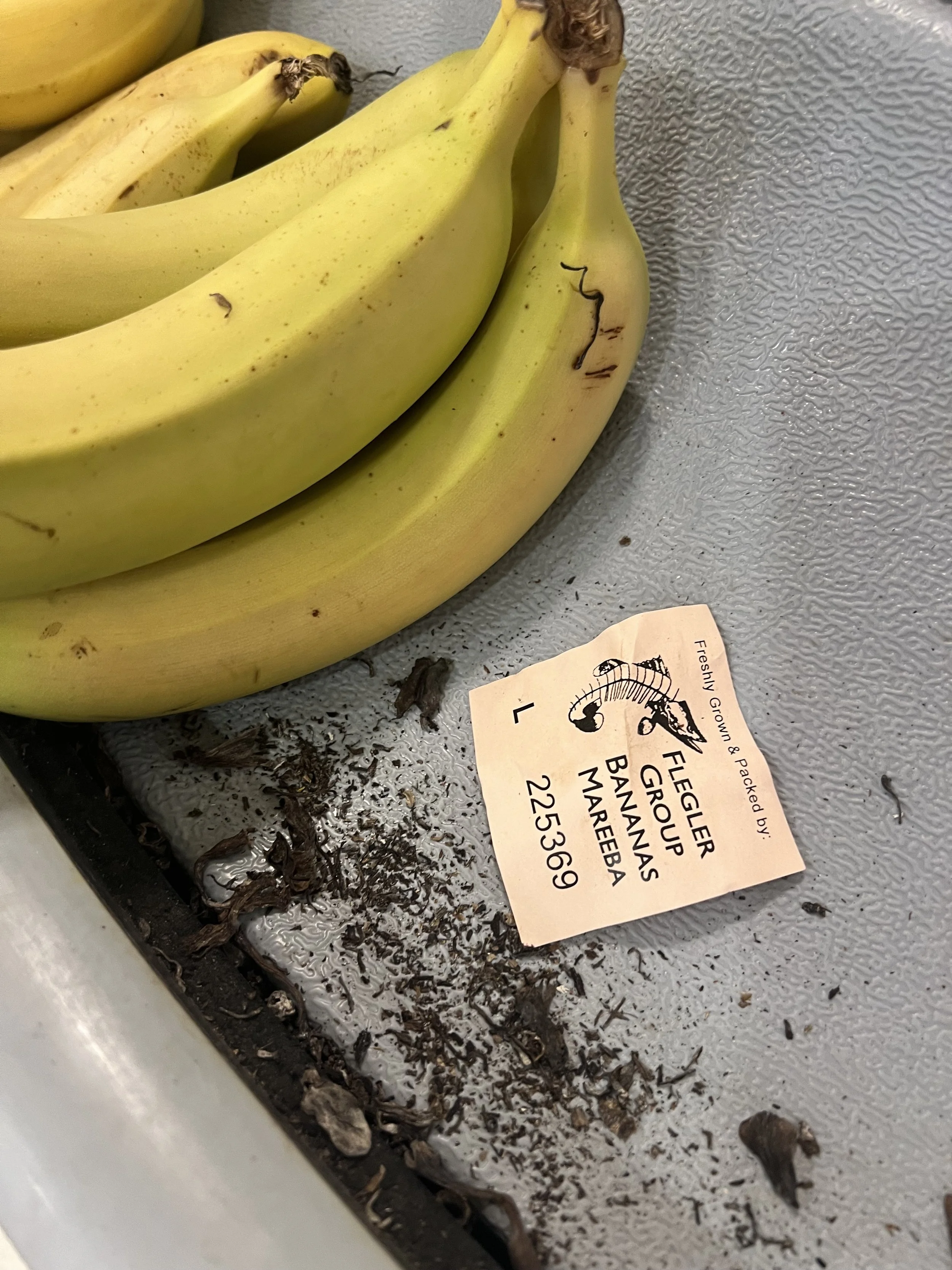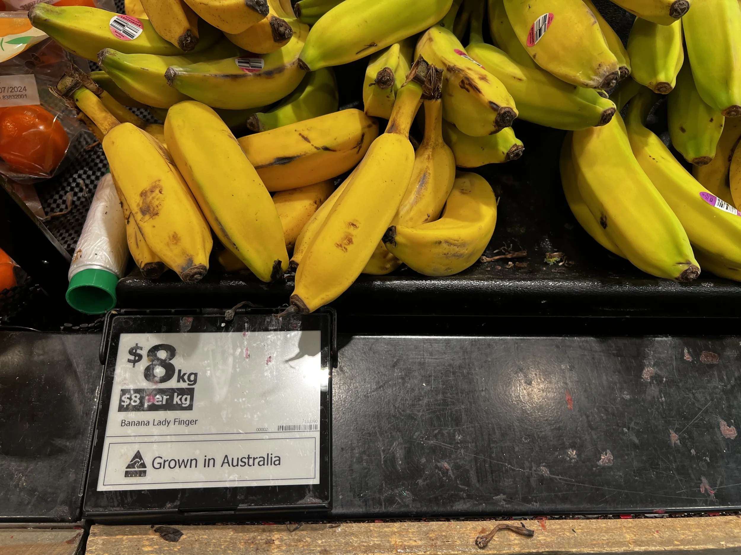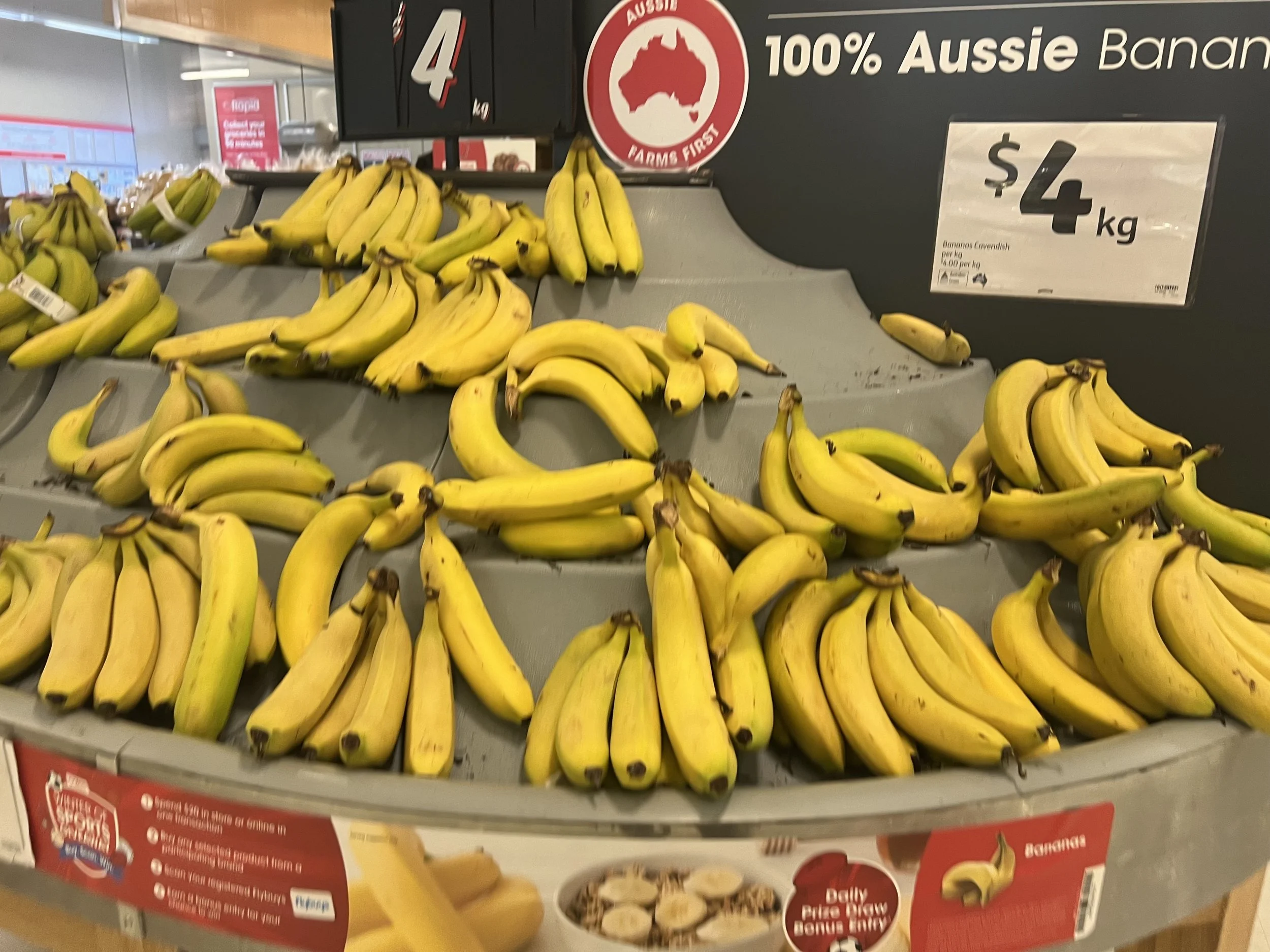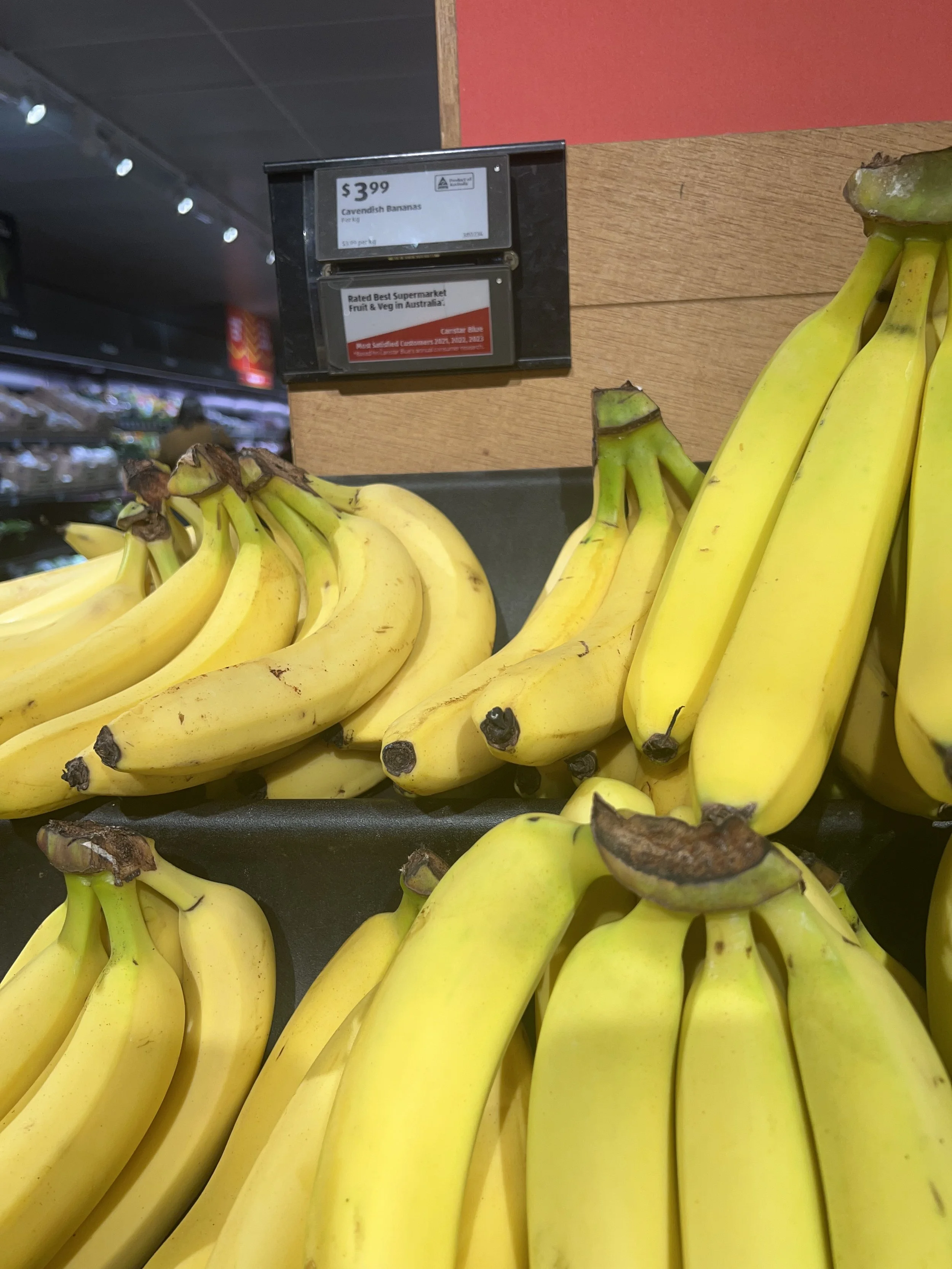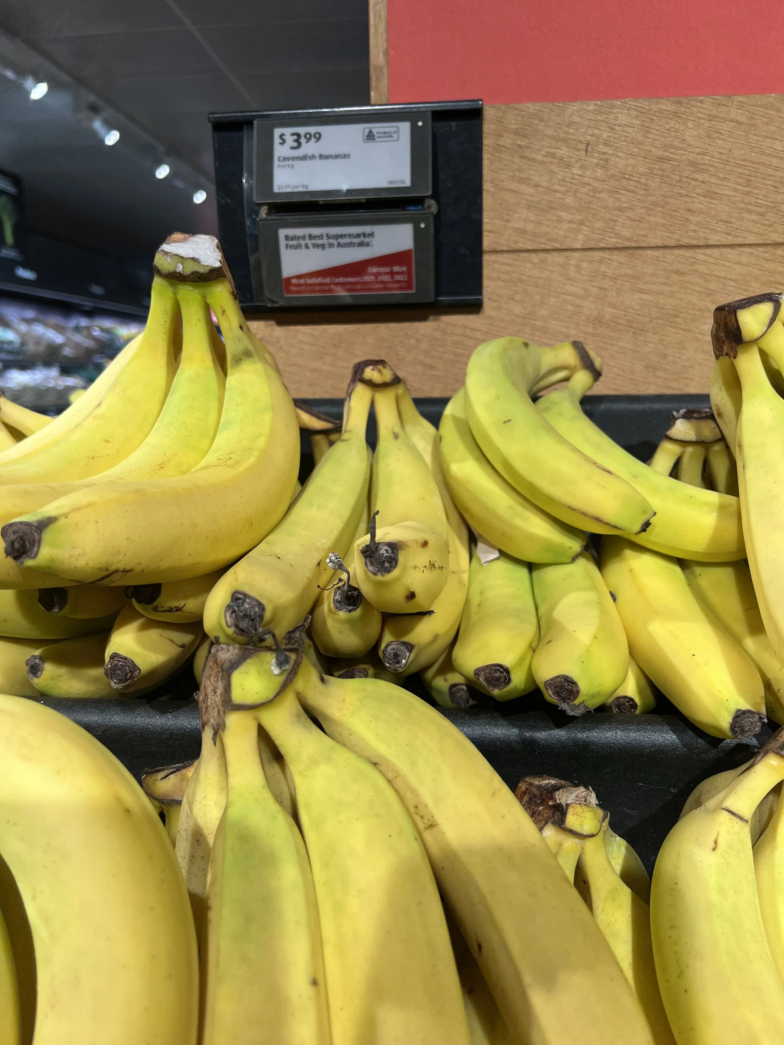 Cavendish Bananas priced at $3.99/kg. Some minor skin marking and neck injuries still the main find.
