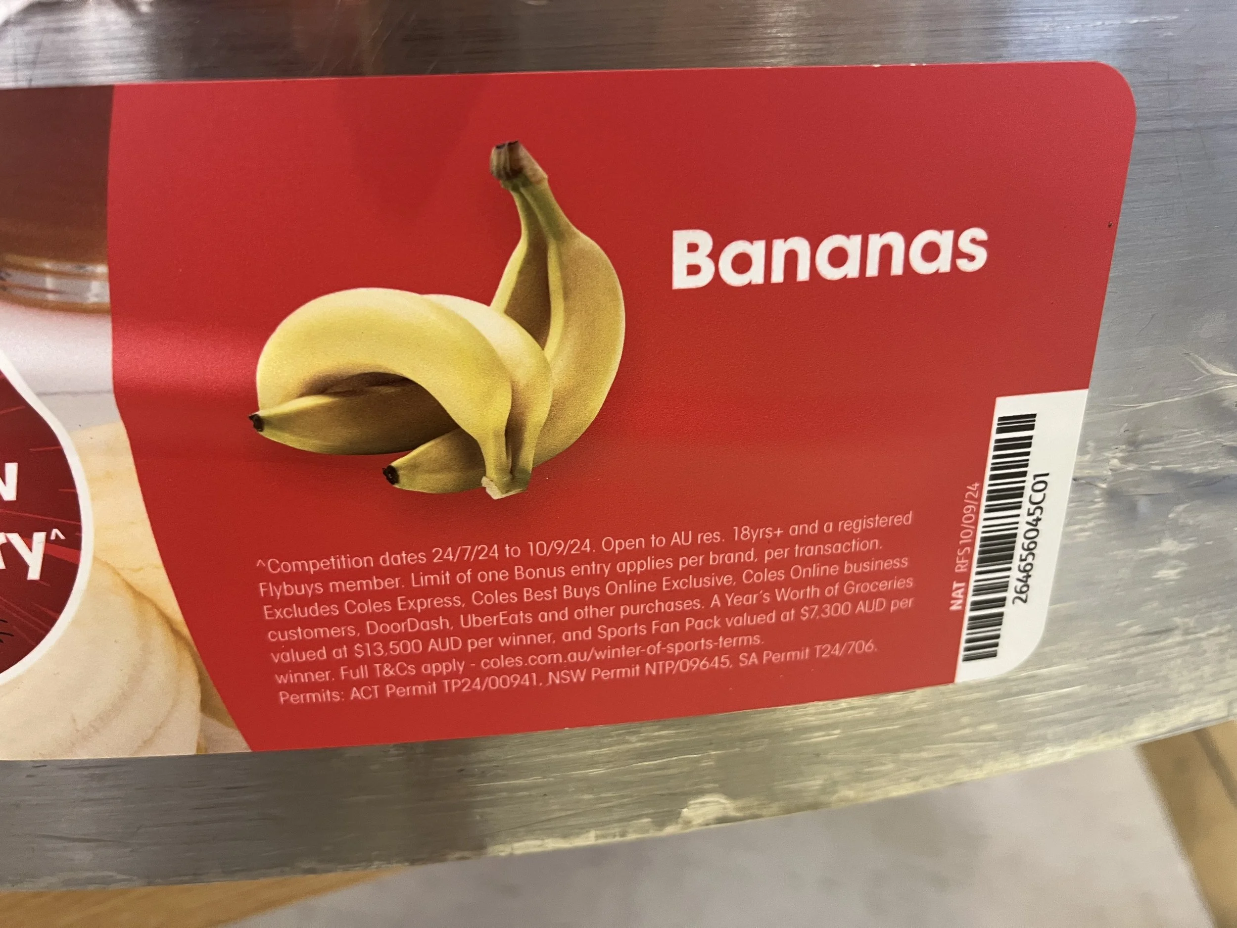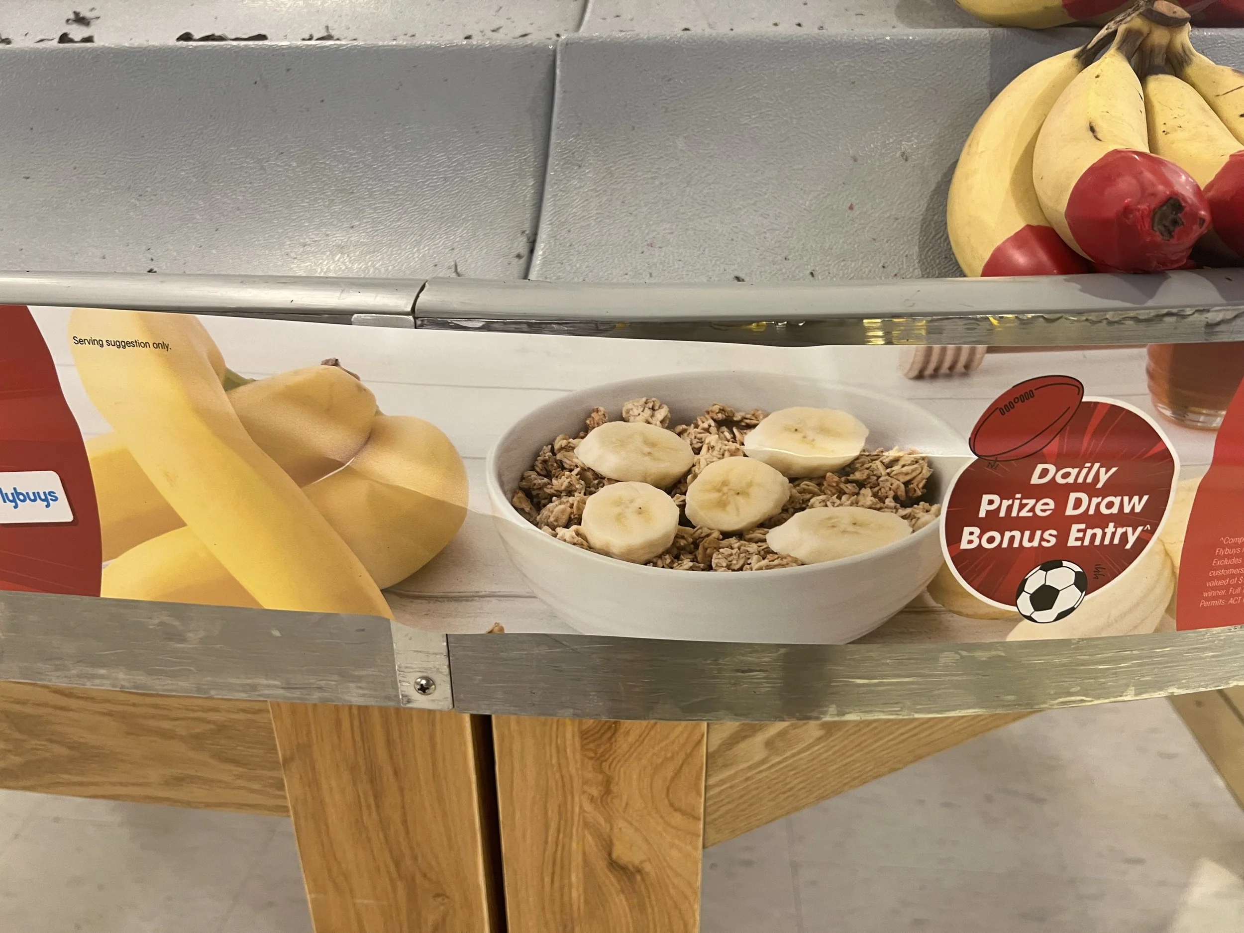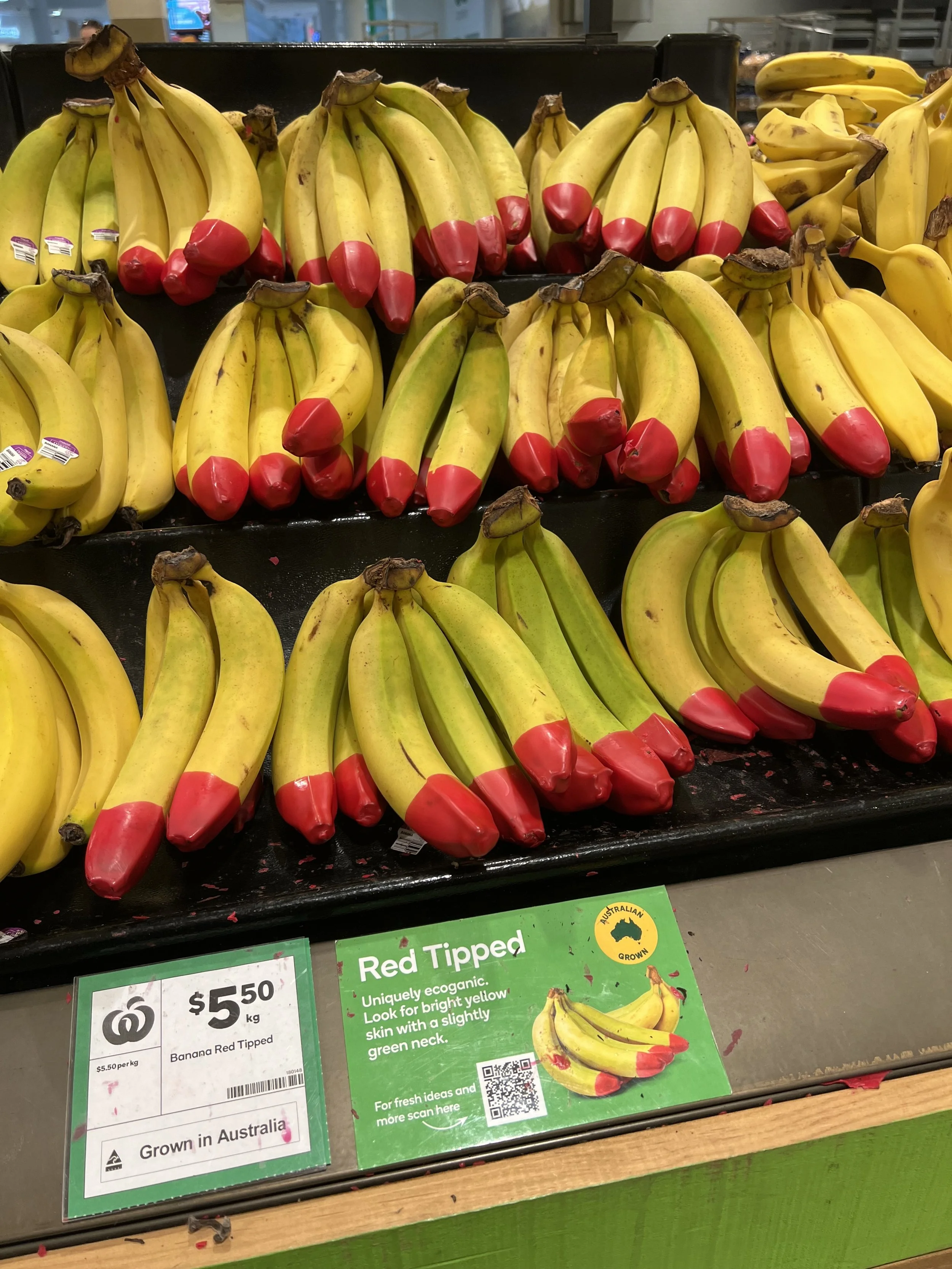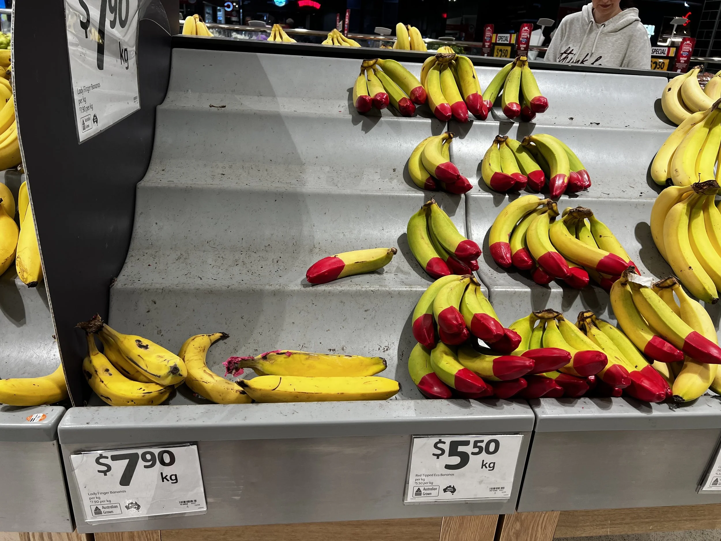 The display of Cavendish priced at $4.50/kg. Good colour and appropriately sectioned in ‘Eat Now’ and ‘Eat Later’. Kids packs at $3.50ea.