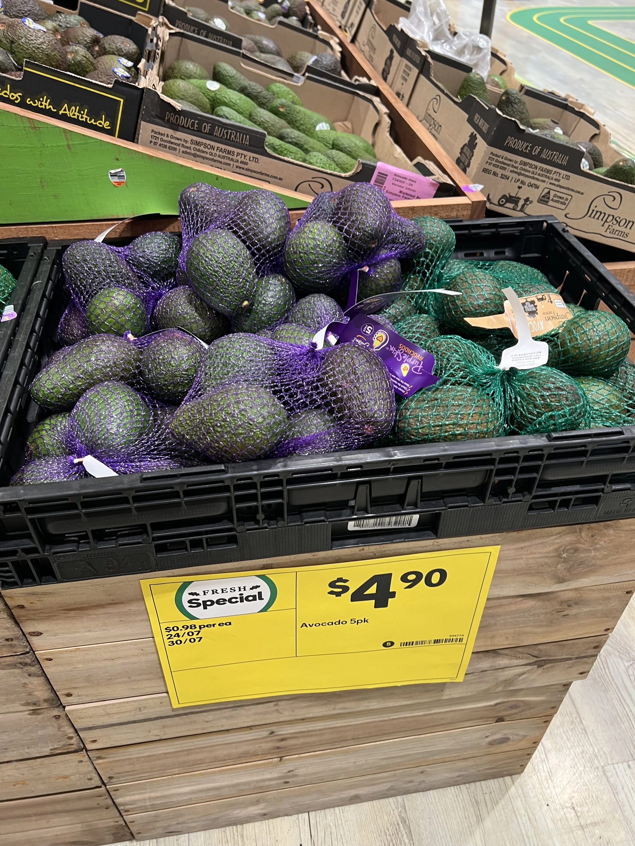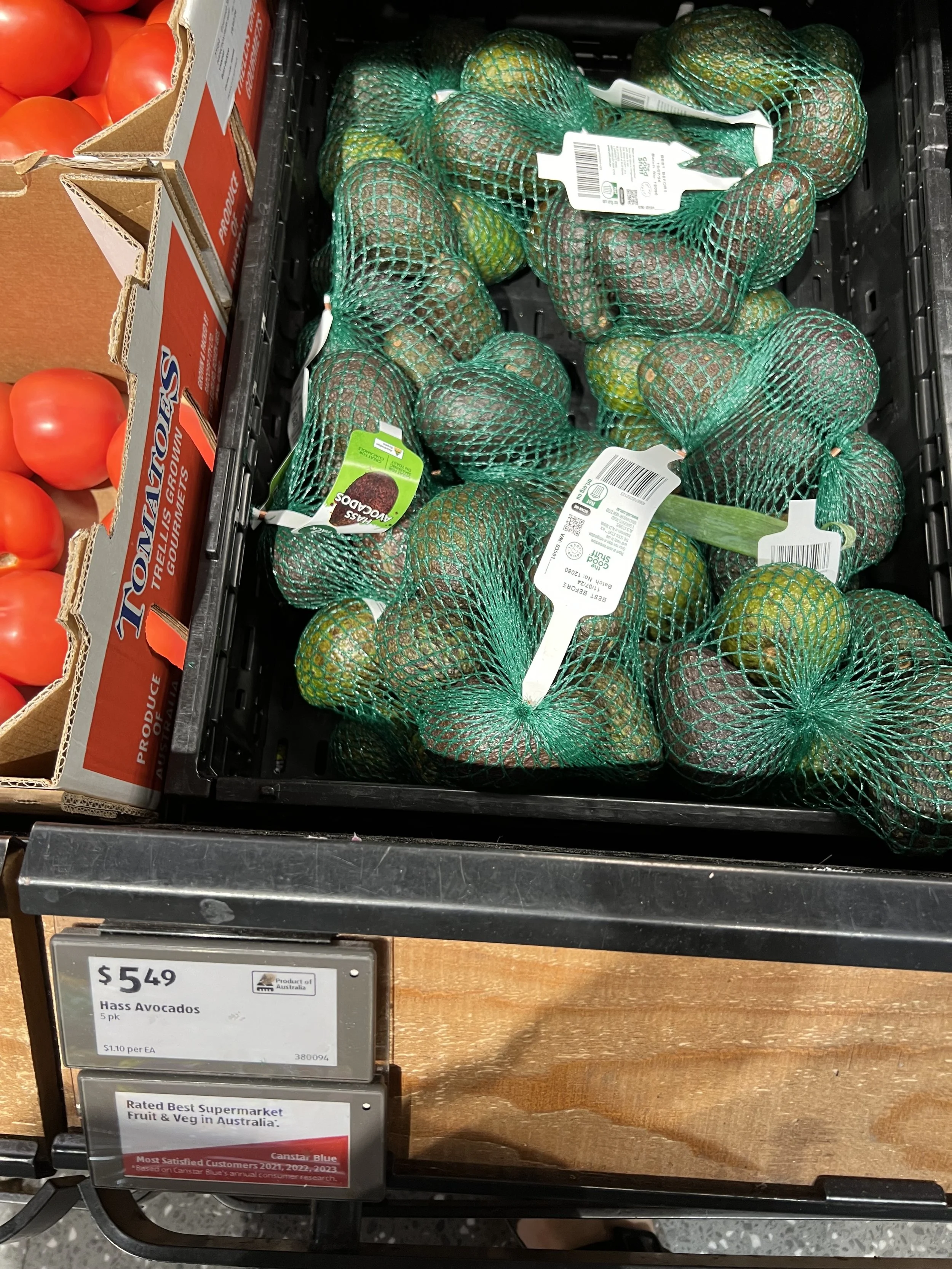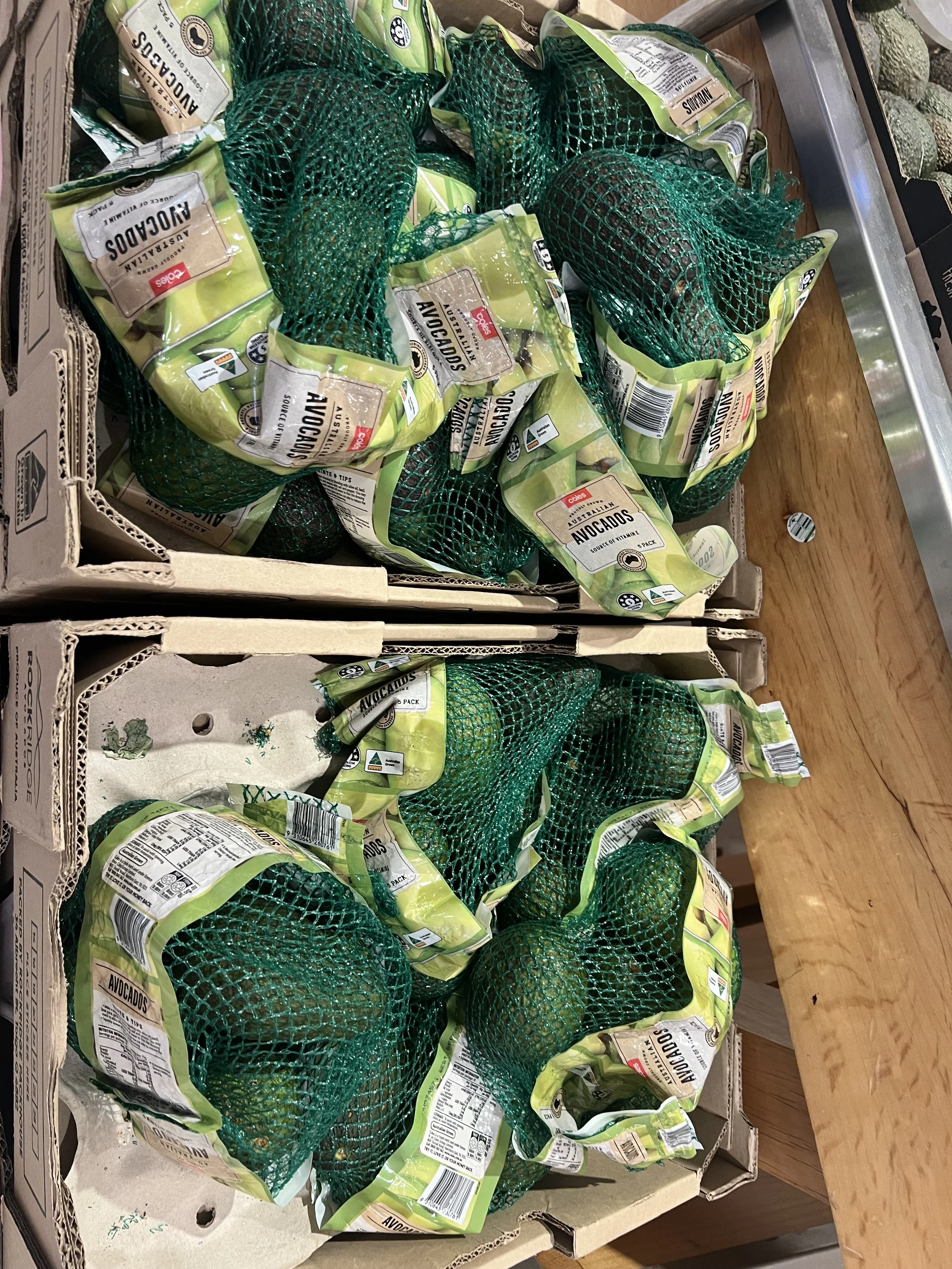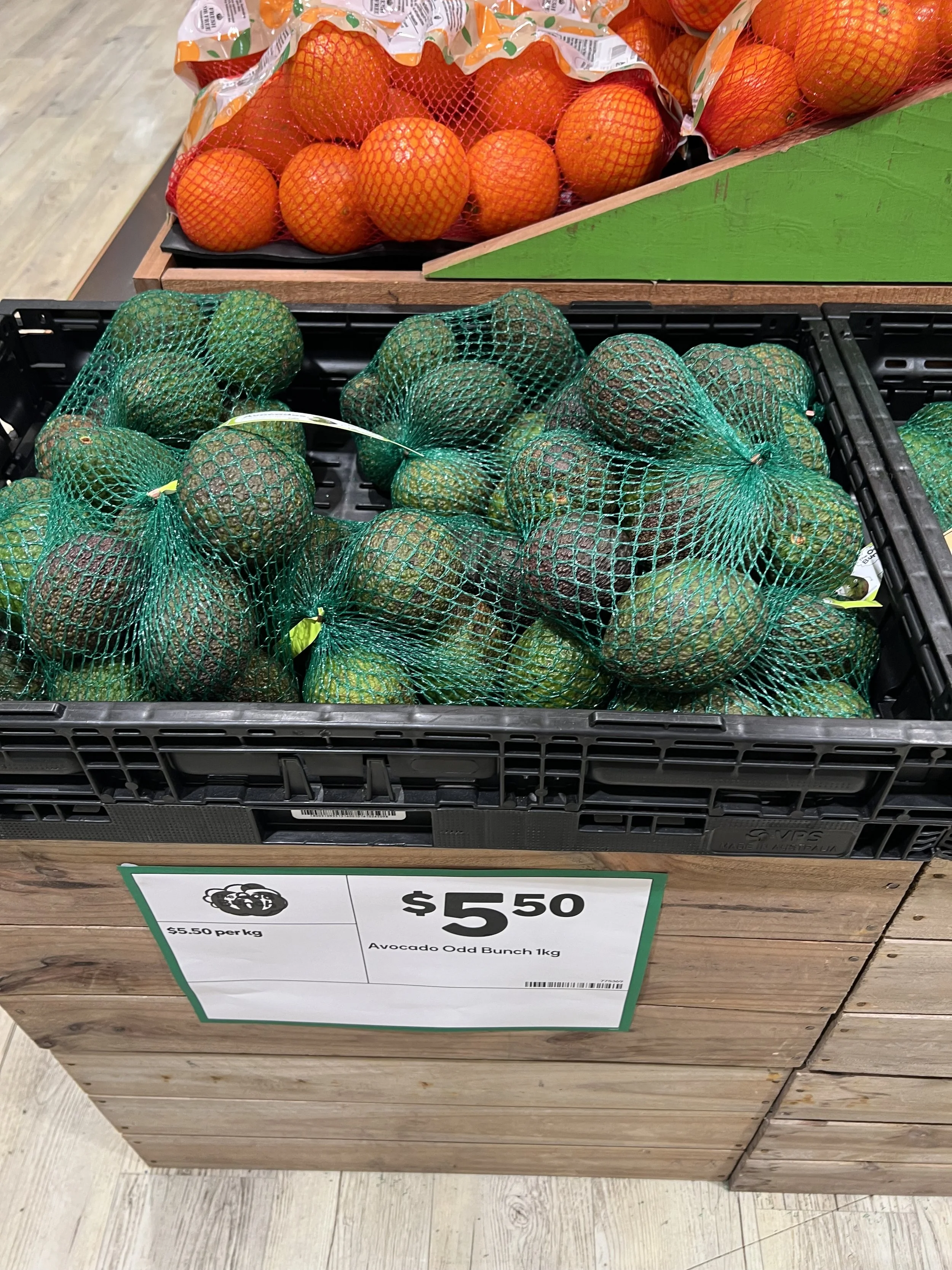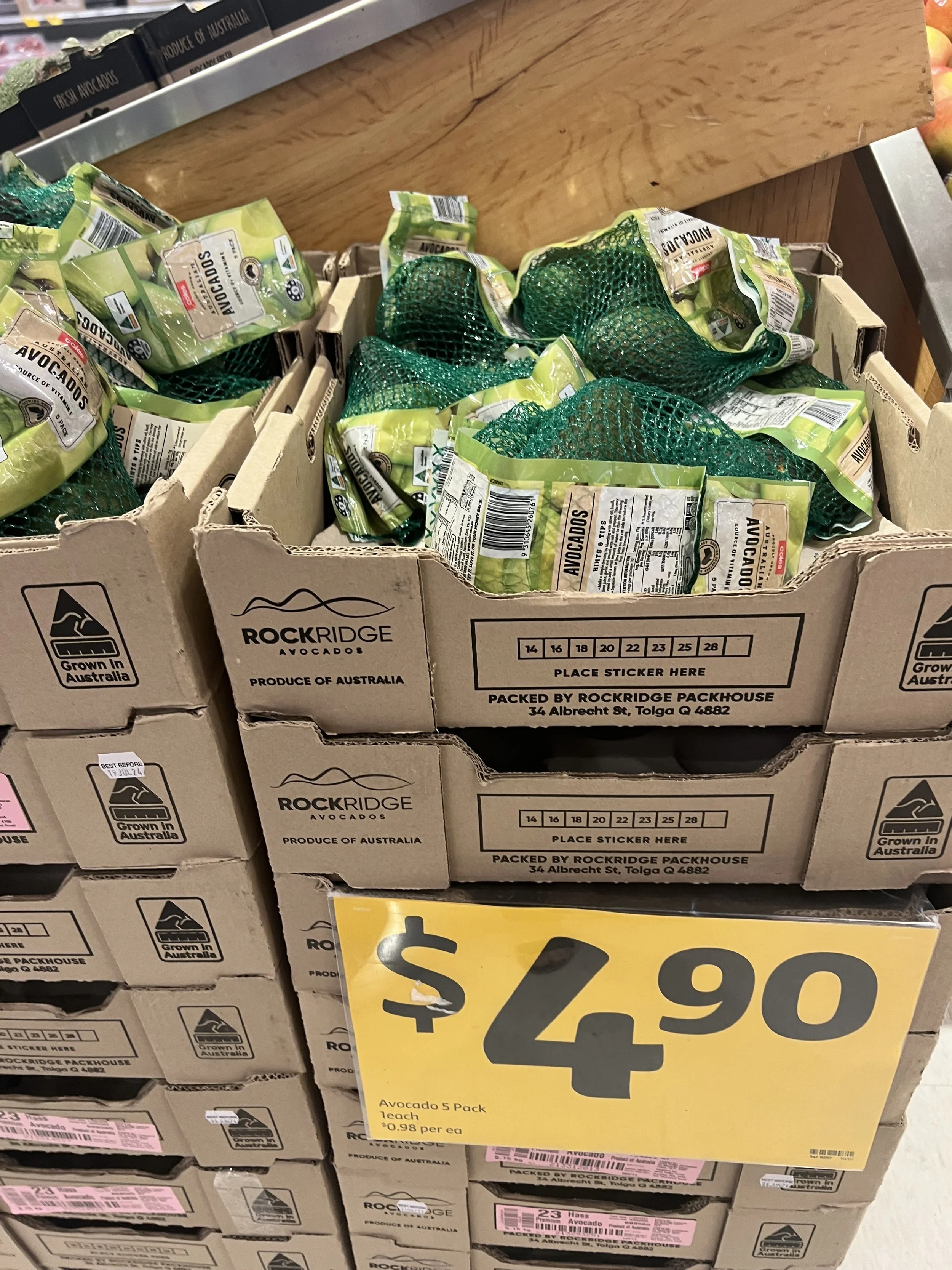 1kg packs for $4.69ea. 5 piece Hass packs at $5.49ea.