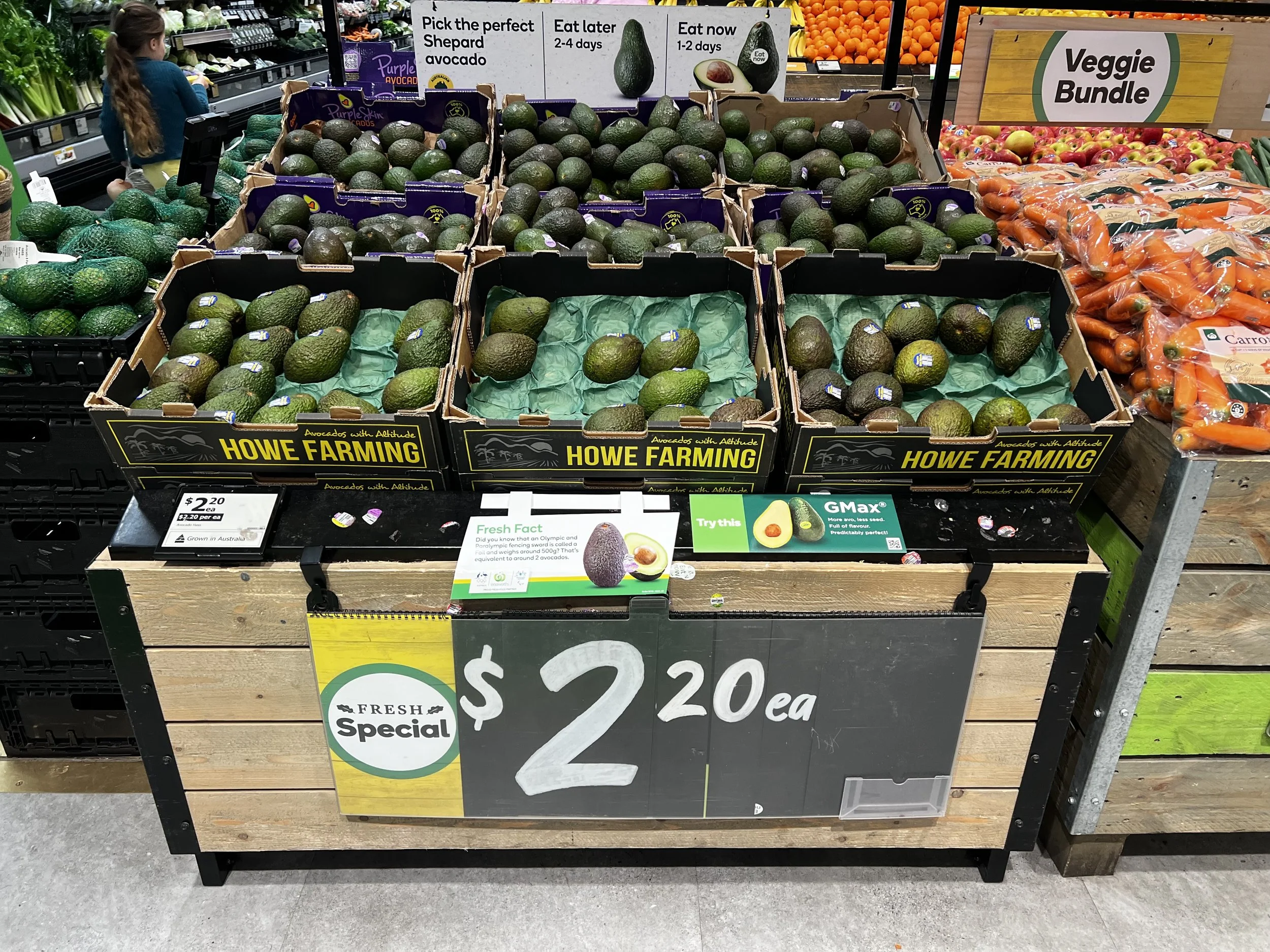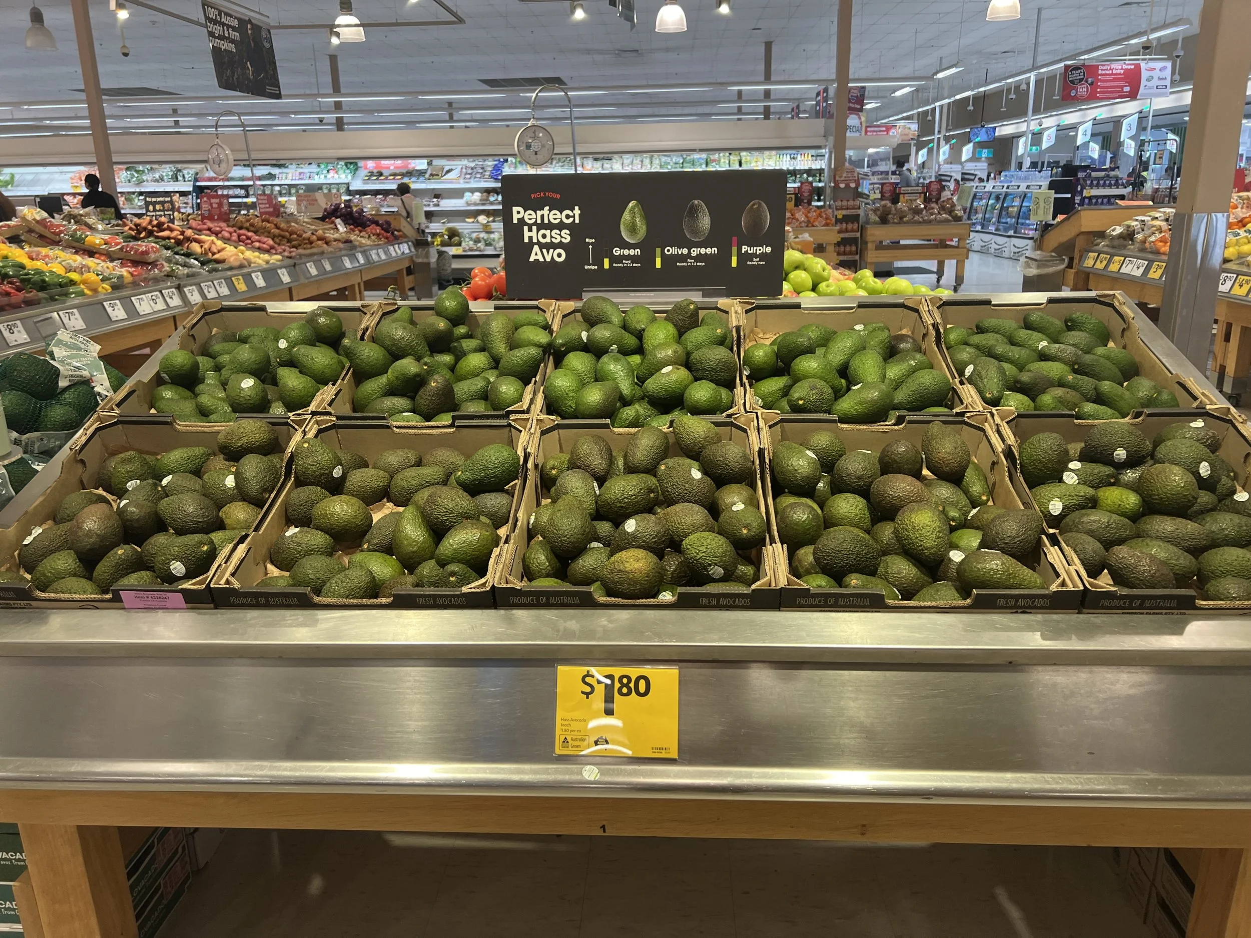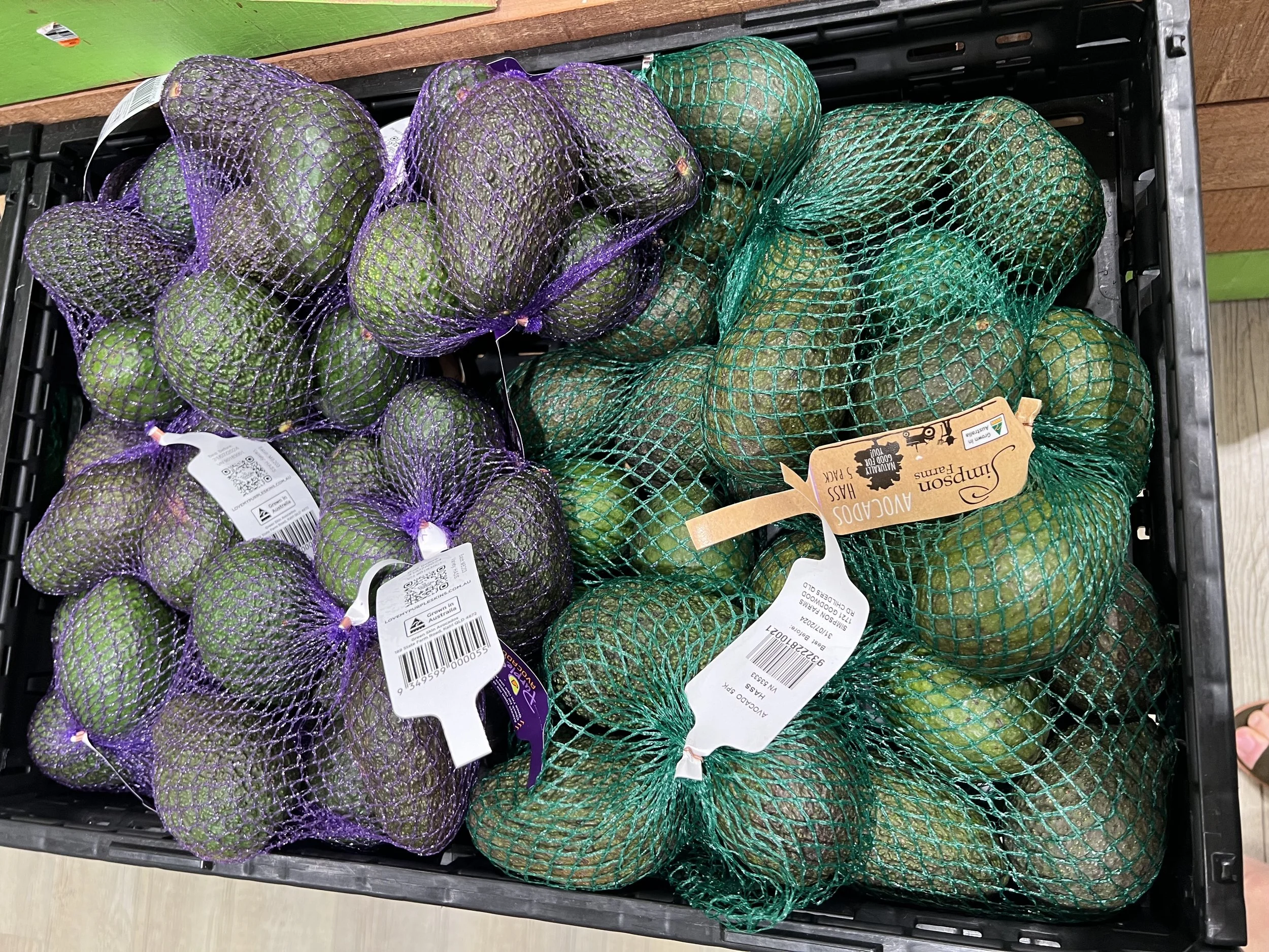 Purpleskin and Howe Farming Hass avocados priced at $2.20ea.