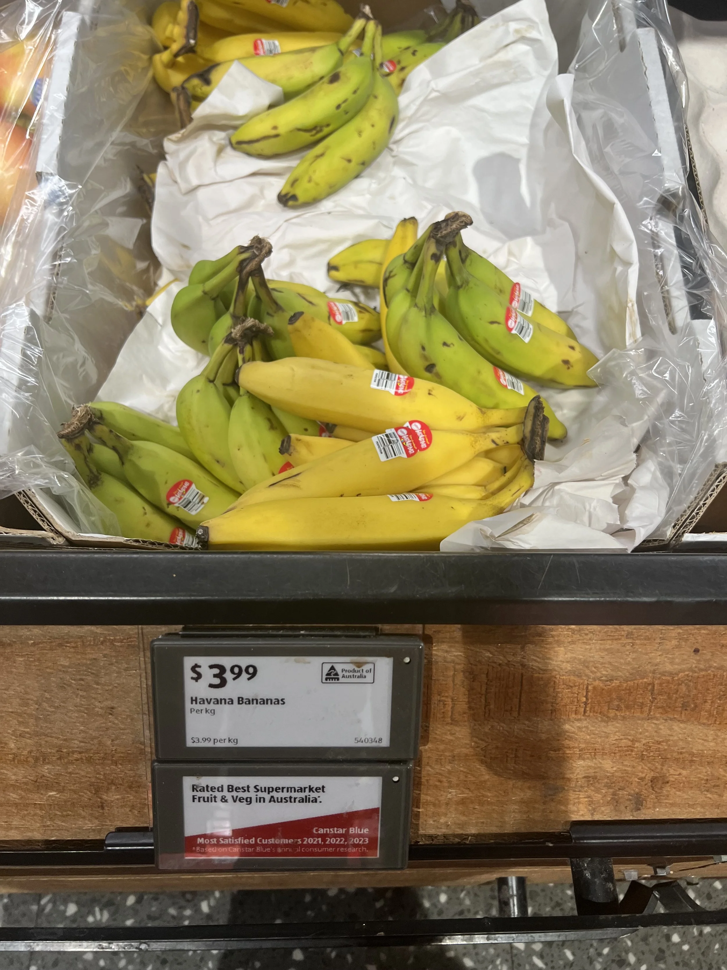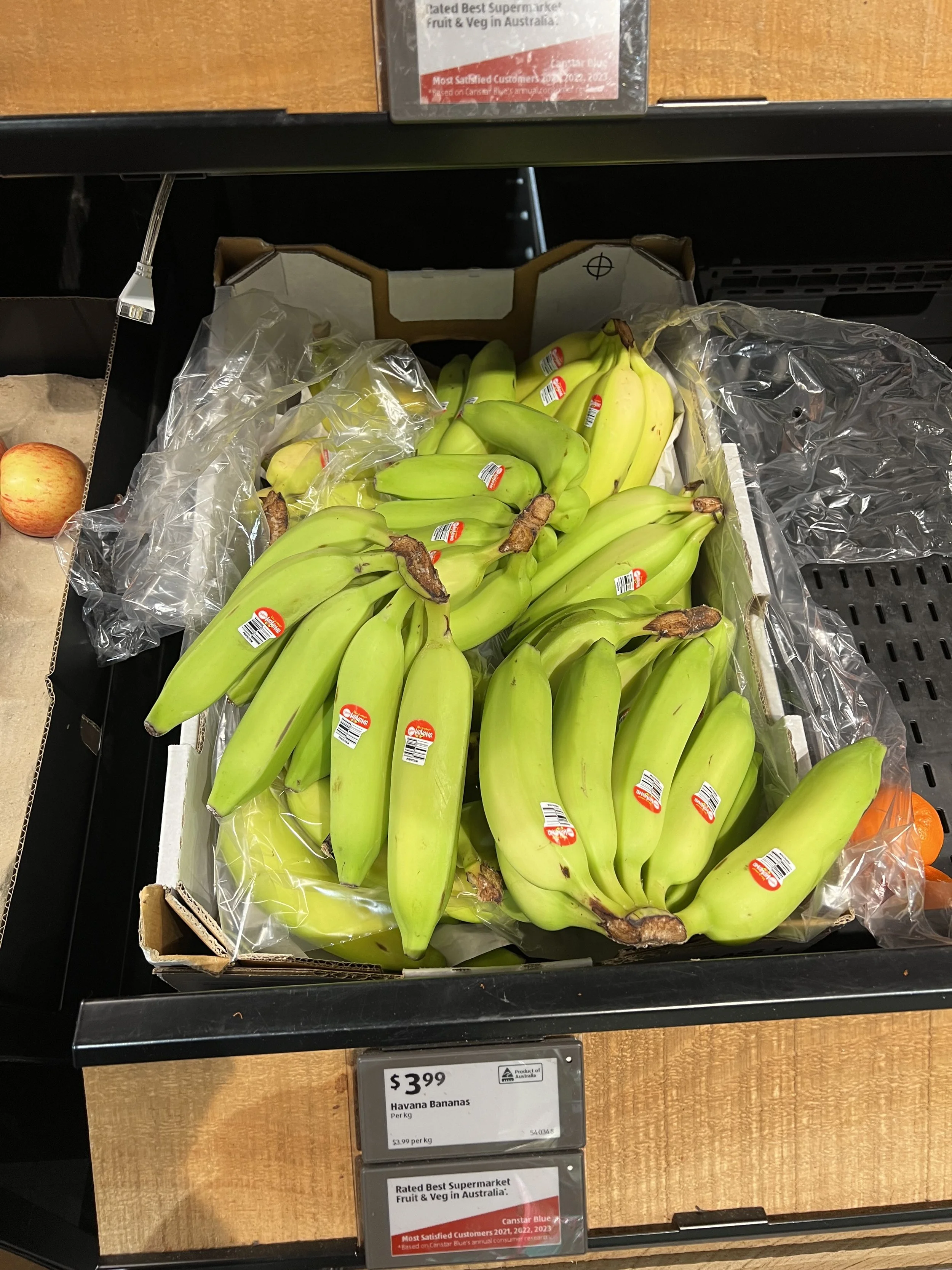 Havana bananas at this store this week, $3.99/kg - quite a number were cut/bruised and green/under ripe.