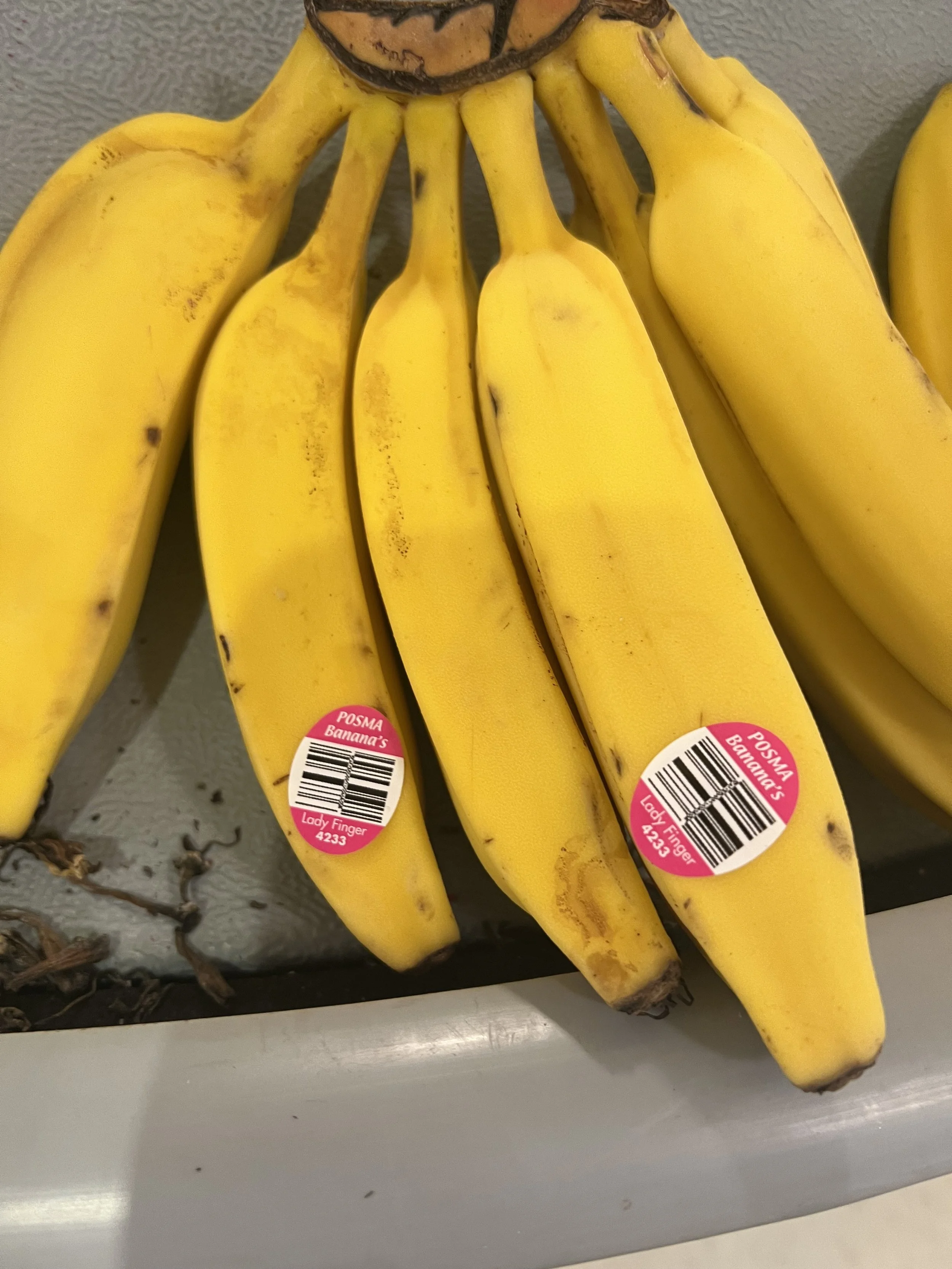 Havana bananas also at $3.99/kg. Clean skin but green.
