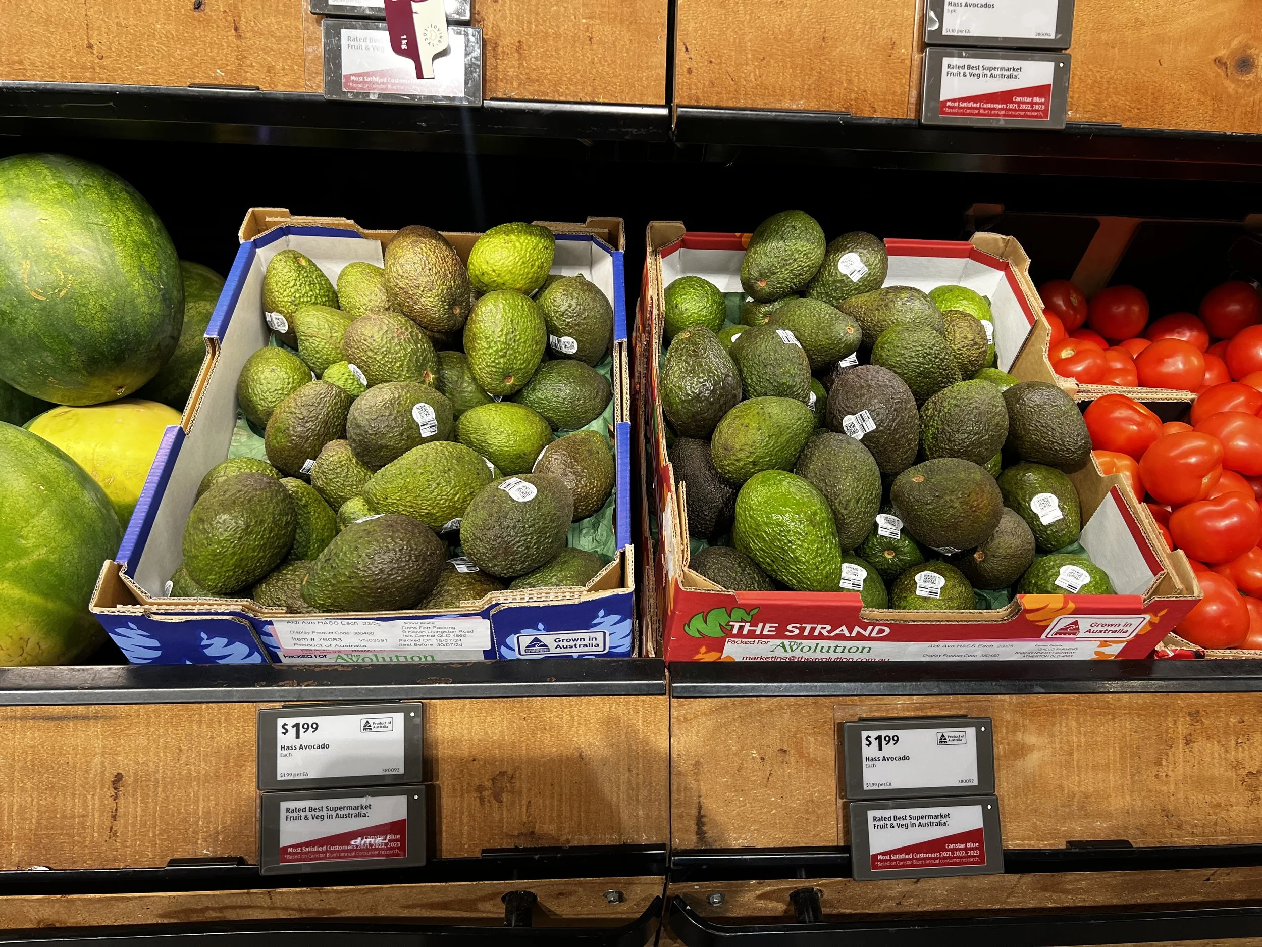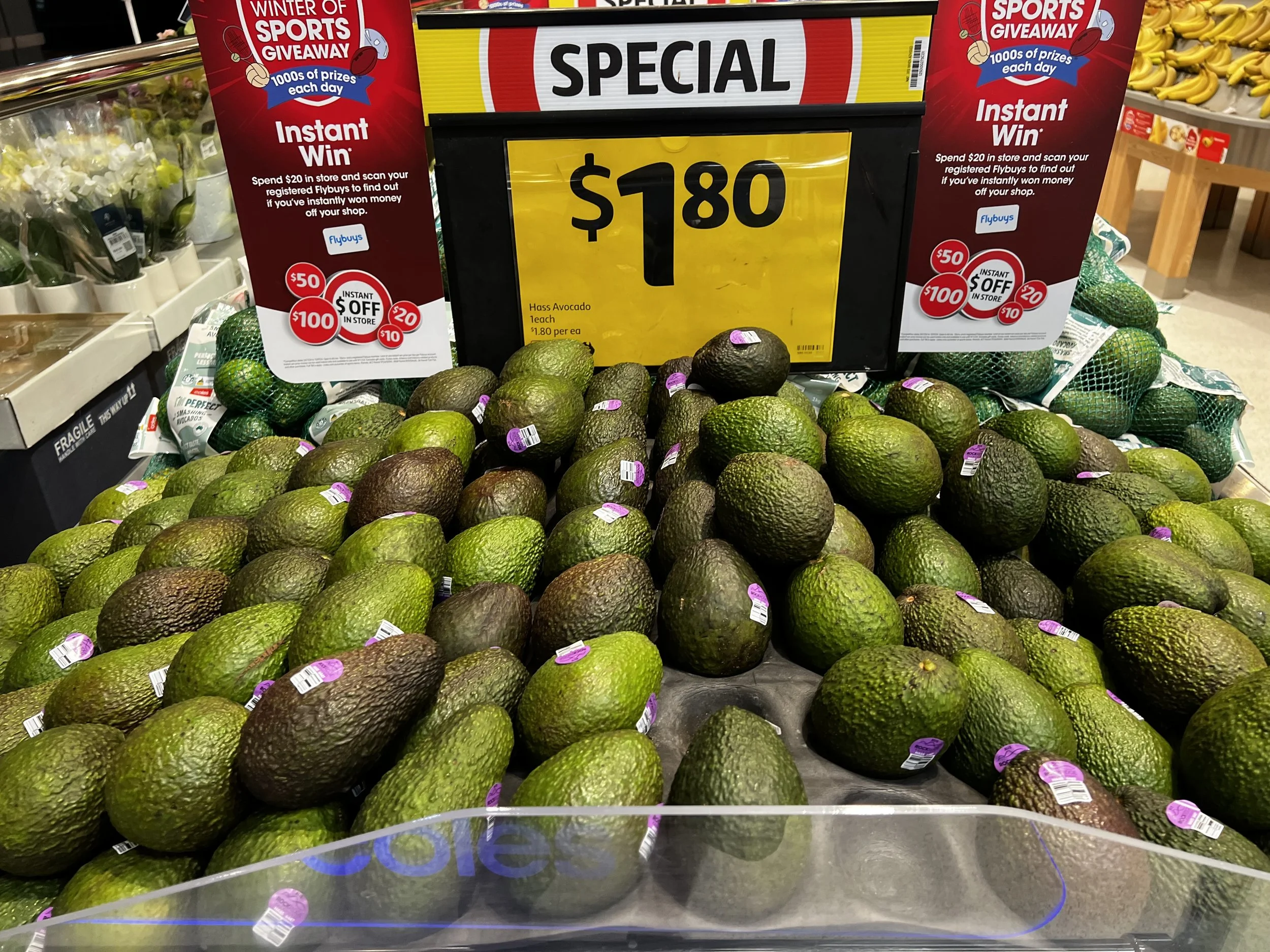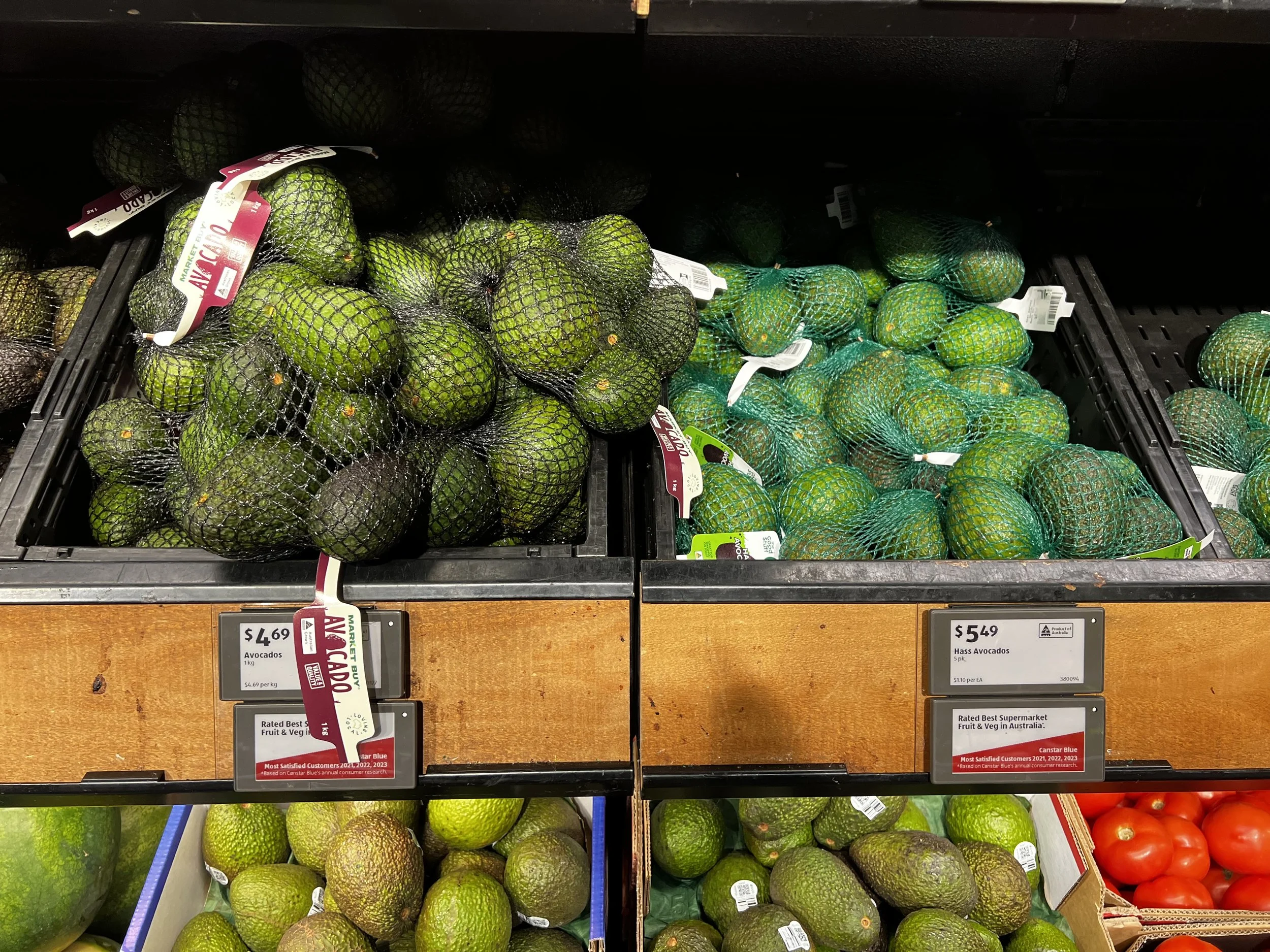 Left to Right: Woolworths Hass; Aldi Hass and Coles Hass Avocados in Queensland stores