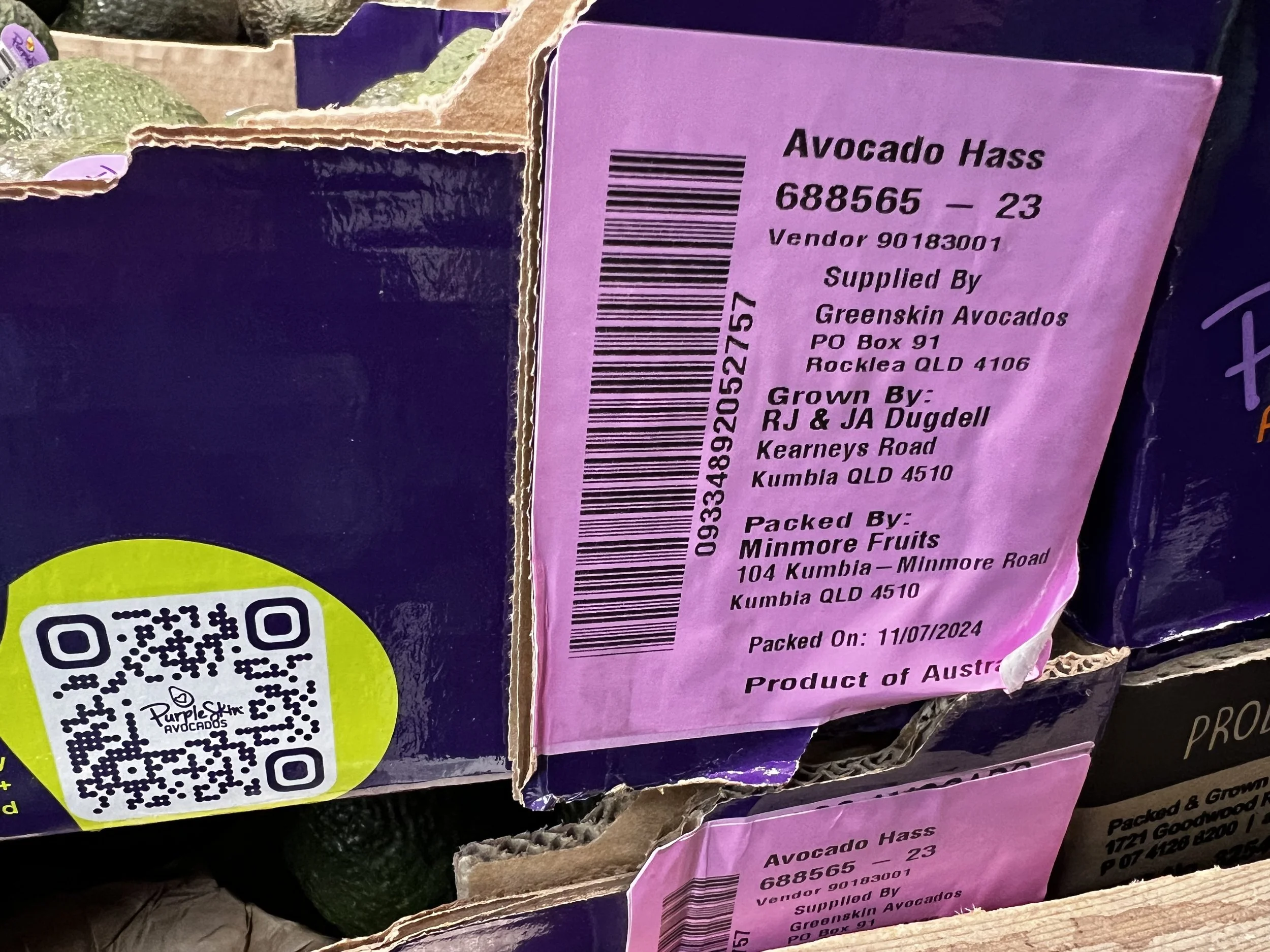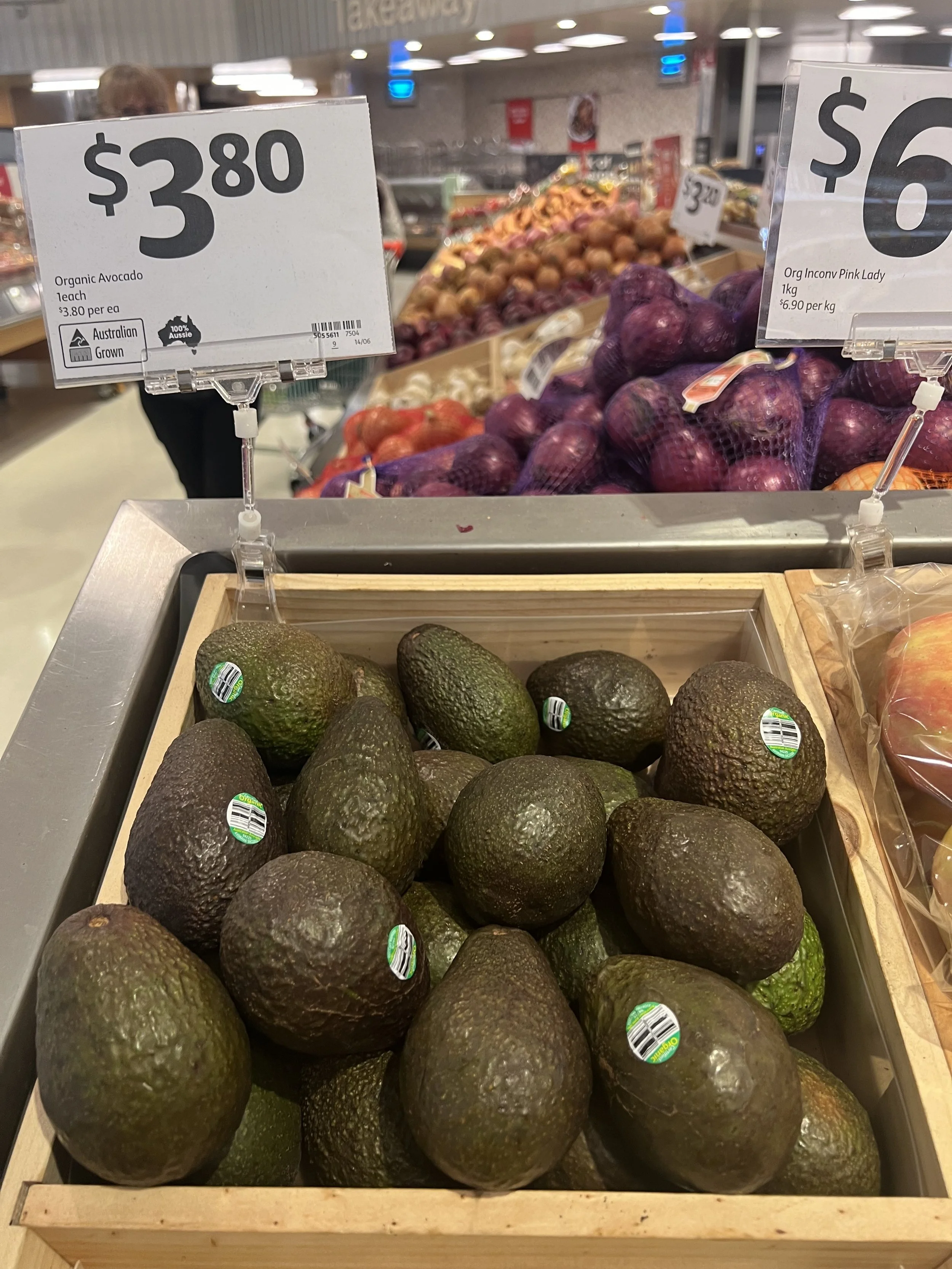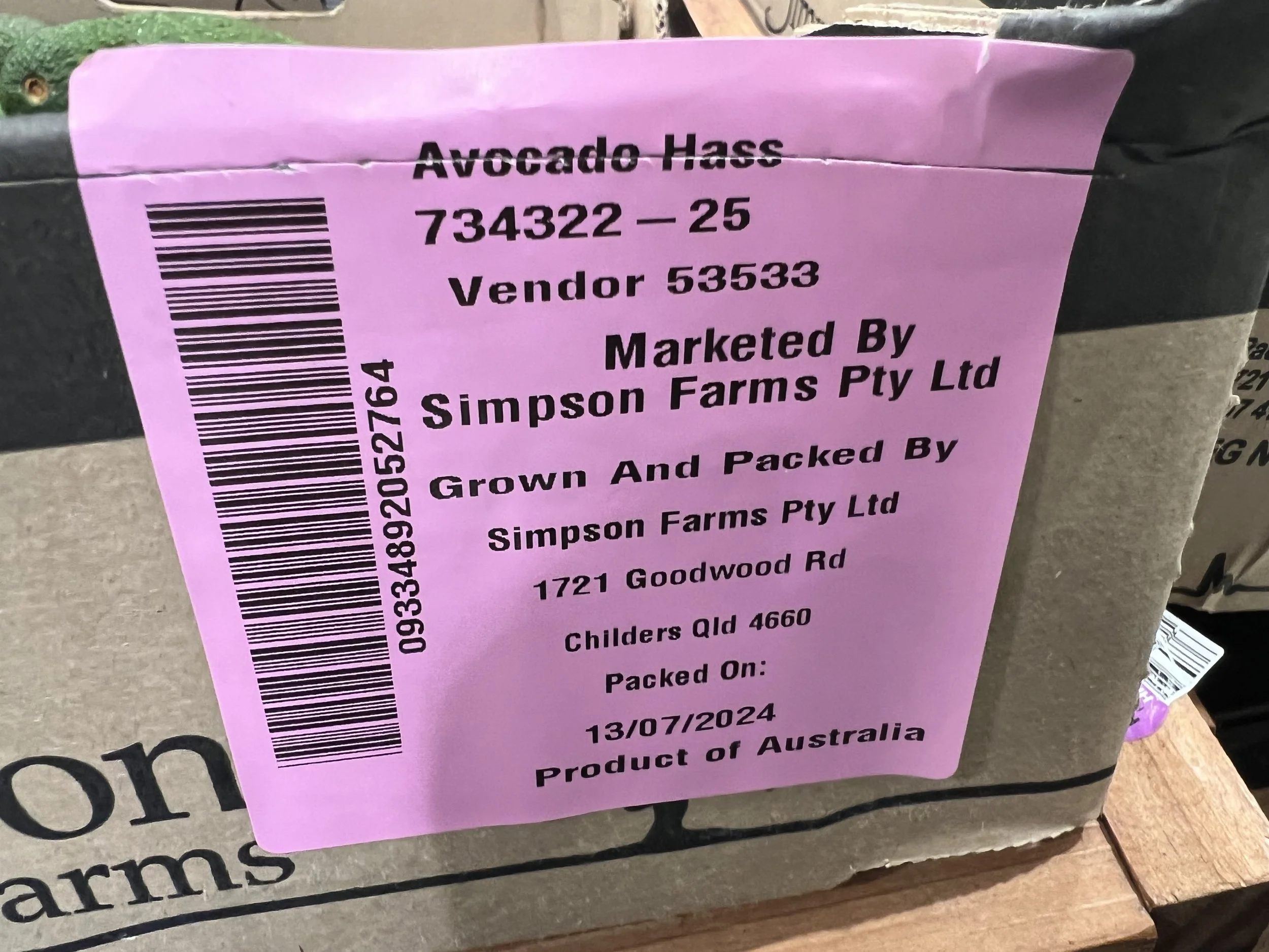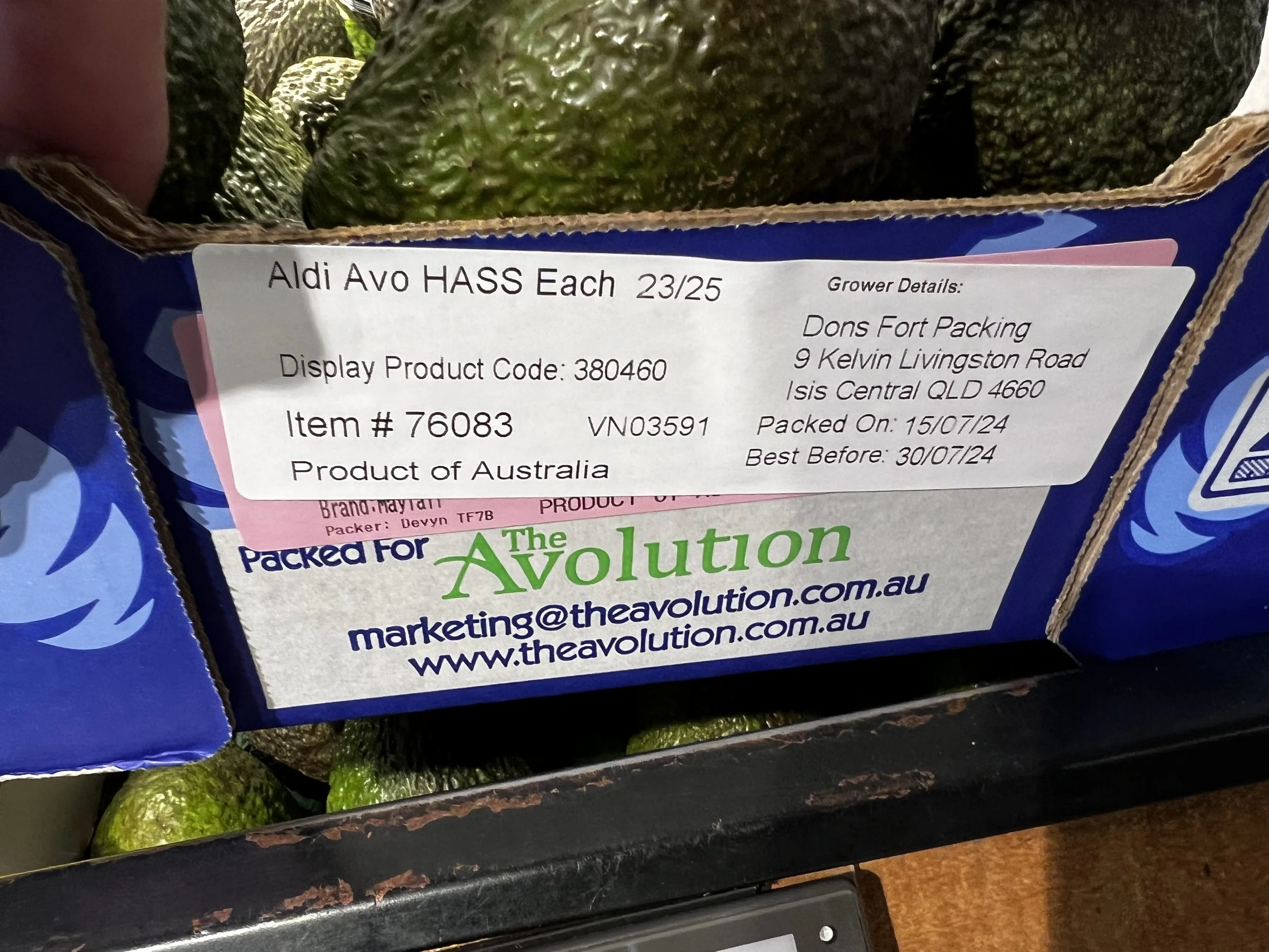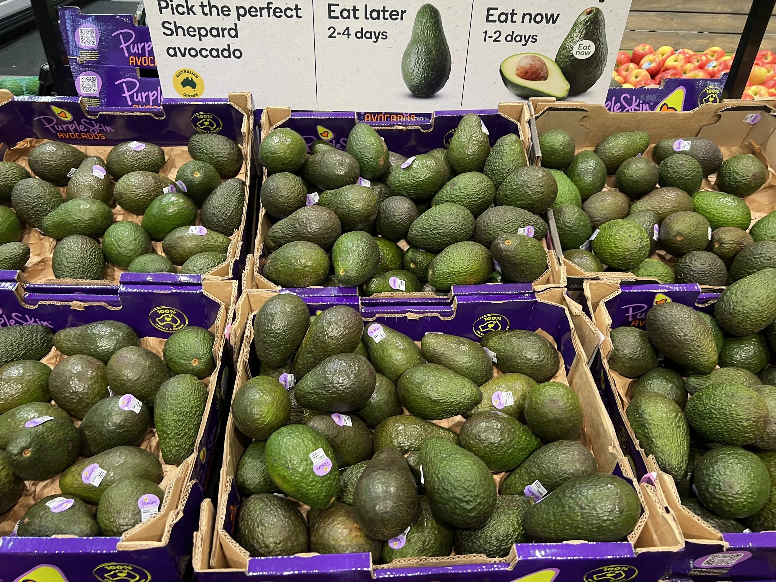 In terms of Avocado retail in the major supermarkets in Qld and Adelaide this week we saw shelf prices as follows - Aldi’s Purpleskin and Avolution Hass this week with shelf tickets at $1.99 each; Coles Qld stores visited had Rock Ridge Hass avos at $1.80ea, and Woolworths Qld with Purpleskin and Howe Farming supplied Hass at $2.20ea.