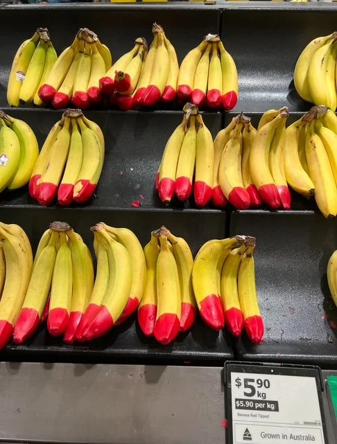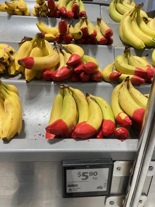 Red Tipped bananas at $5.90/kg and Organic at $6.50ea.