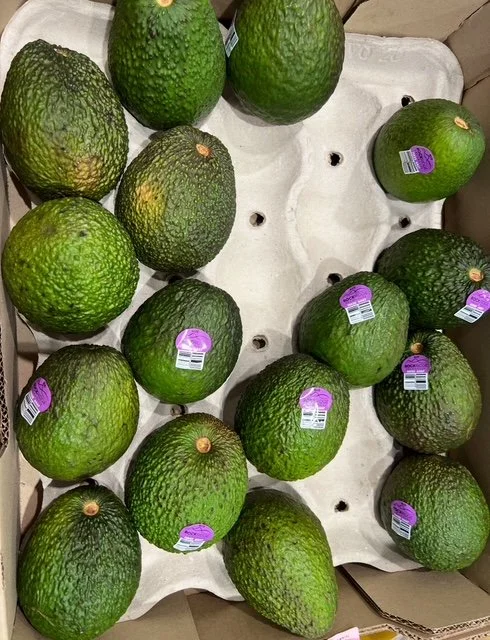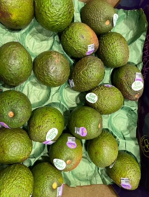 Ct 23-25 Hass Avocados priced at 2 for $3.00. Fruit packed between 6th and 9th June, fruit age therefore was 9 to 12 days old from date of pack.