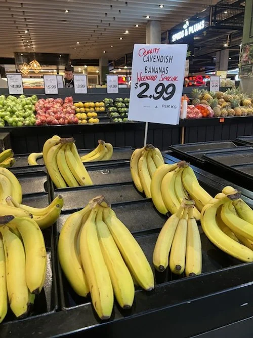 Cavendish Bananas on a ‘weekend special’ priced at $2.99 per kg.