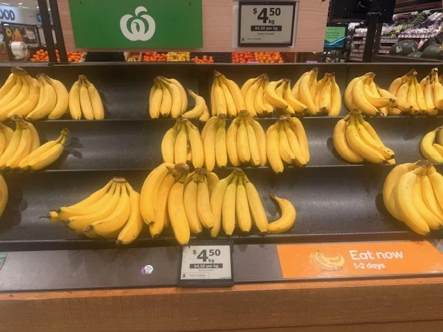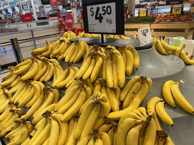 Retail ticket pricing in Queensland for cavendish bananas were relatively stable as follows: Aldi’s banana ticket price at $4.49/kg; Woolies offered fruit at a ticket price of $4.50/kg; and Coles were offering fruit at $4.50/kg in the stores visited.