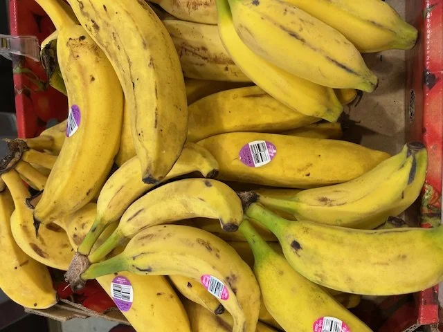 Lady Fingers at $9.00/kg, Red Tipped bananas at $5.90/kg and Organic at $6.50ea.
