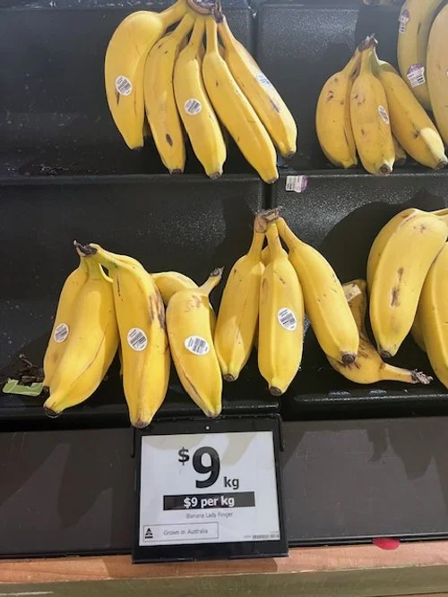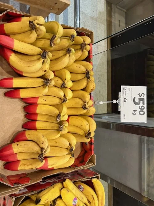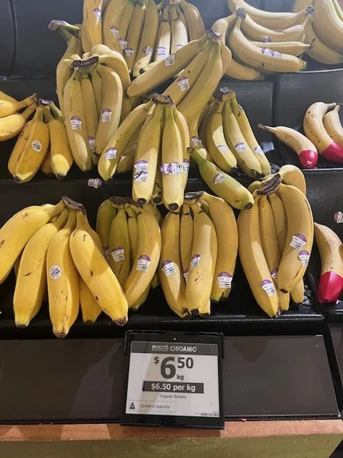 Red Tipped bananas at $5.90/kg and Lady Fingers at $8.90/kg. Organic at $6.50/kg.