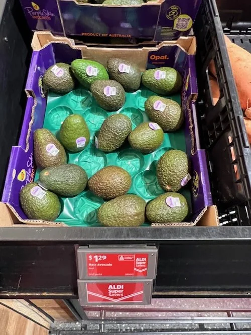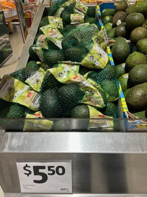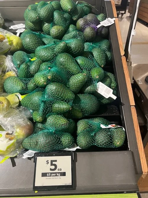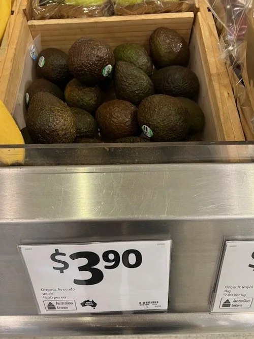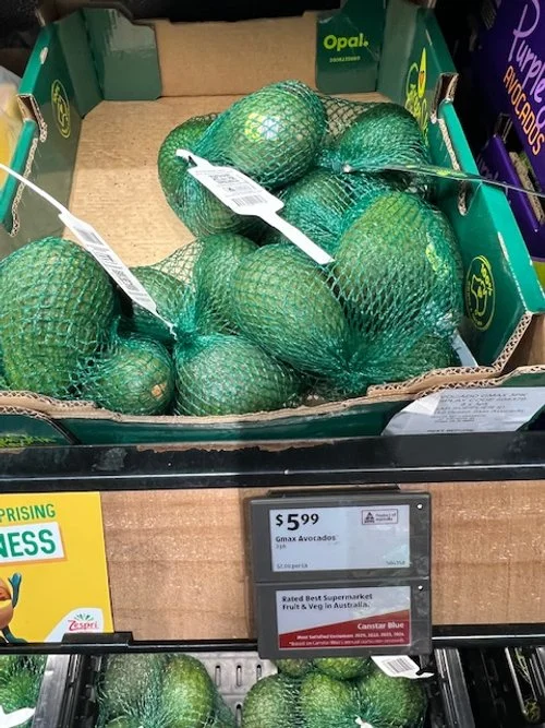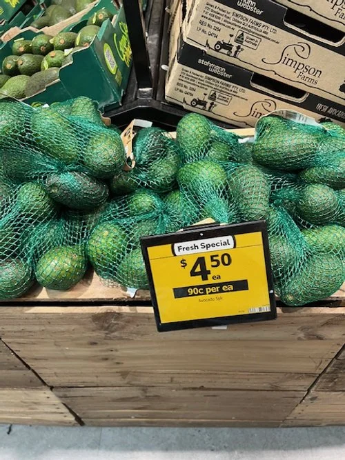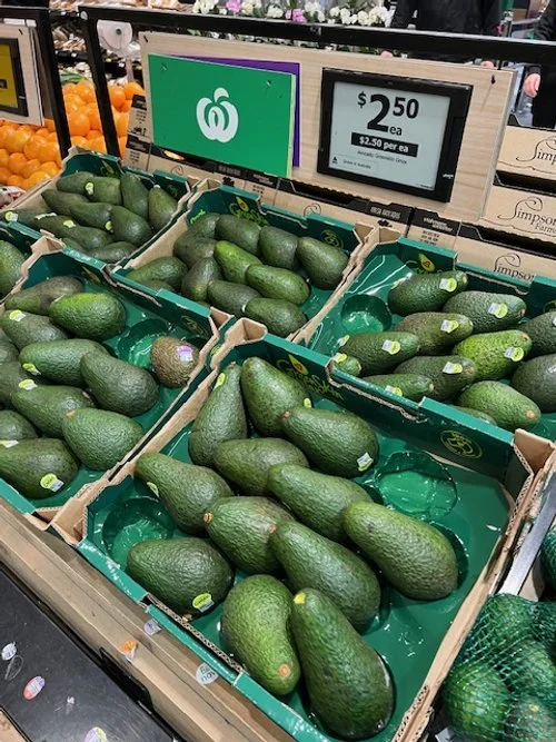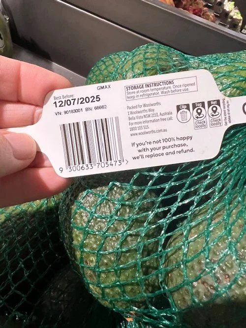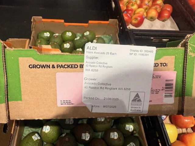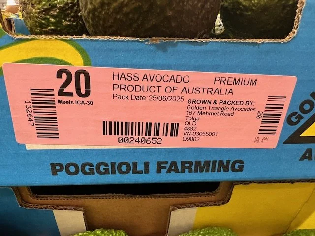 Ct 23/25 Hass at $1.29ea. Supplied by Avo Collective note grower applied pack date of 10th June, yet White label over top states packed date of 21st June. Stock is actually 22 days old.