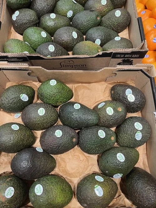Ct 18- 20 Hass grown by Simpson Farms and Greenskins priced $1.50ea (Packed 17th June so fruit age is 15 days). Also some hass supplied by Avo Collective with the same labelling practises. Greenskins Ct 18 GMAX priced at $2.50ea.