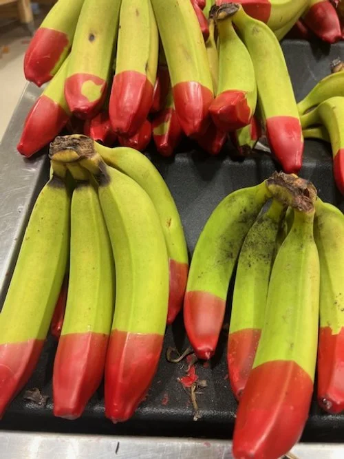 Lady Fingers at $9.00/kg, Red Tipped bananas at $5.90/kg and Organic at $6.50ea.