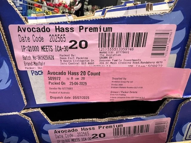Ct 20-25 Hass Avocados priced at 2 for $4.00ea or $2.50ea. Fruit being supplied by Rockridge with packed date of 1st July; Costas (Grower Golden Triangle) packed 25th June and Simpsons Farming Ct 25’s packed 27th June - so fruit age ranging 8 to 14 days.