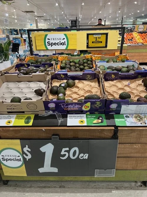 In terms of Avocado retailing in the major supermarkets in Qld this week, we saw pricing as follows - Aldi’s Hass at $1.49 to $1.69each; Coles Qld stores visited had Hass avos on promo at $1.50ea, and Woolworths Qld with GMAX at $2.50ea and Hass on promo for $1.50-$2.00ea.