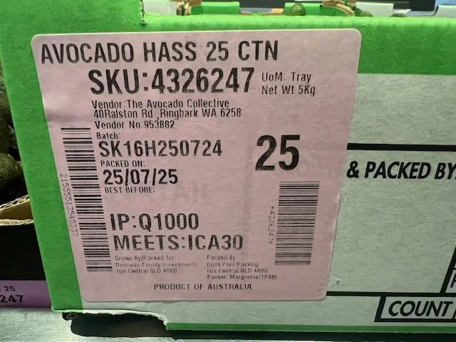 Ct 25 Hass Avocados priced at $1.80ea being supplied by Simpson Farms and Avocado Collective (sourced from Don Fort Packing) Fruit packed 23-25th July so fruit age 13-15 days.