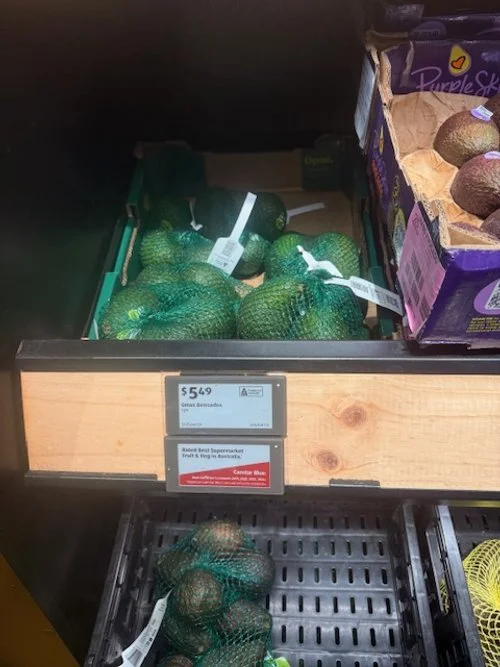 Left to Right: Woolworths Hass; Aldi Hass and Coles Hass Avocados in Queensland stores