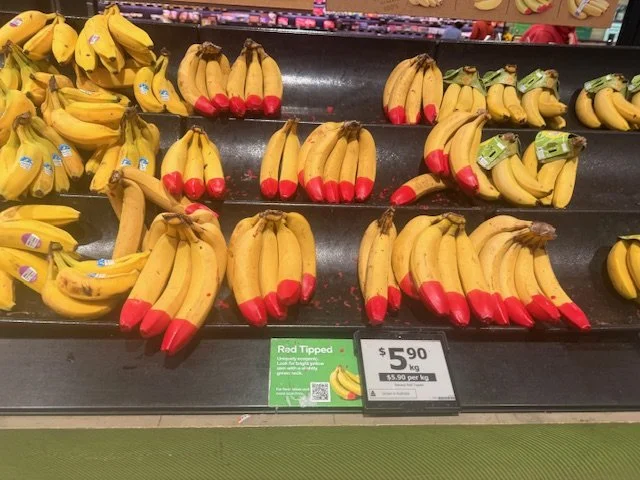 Red Tipped bananas at $5.90/kg and Organic at $6.50ea.