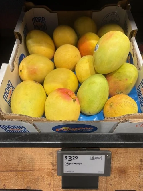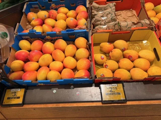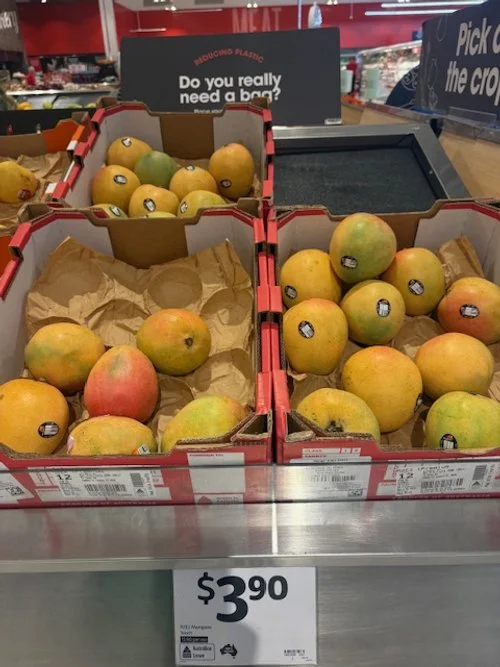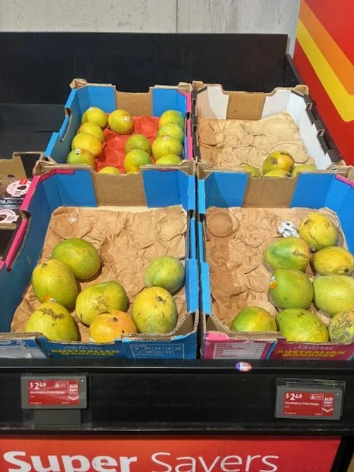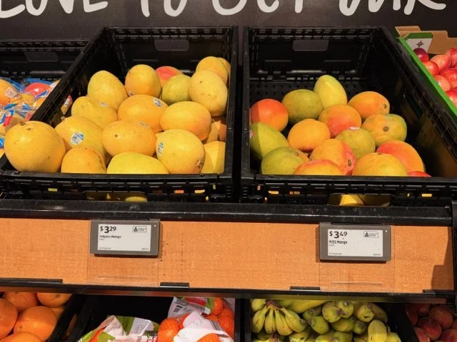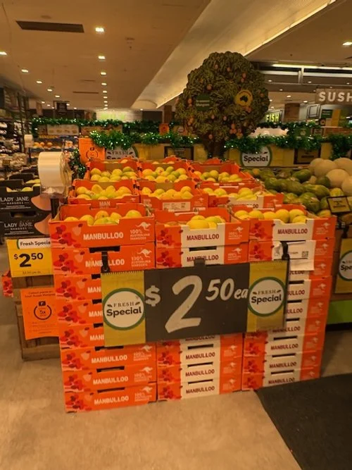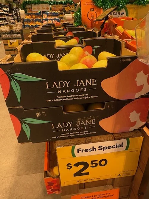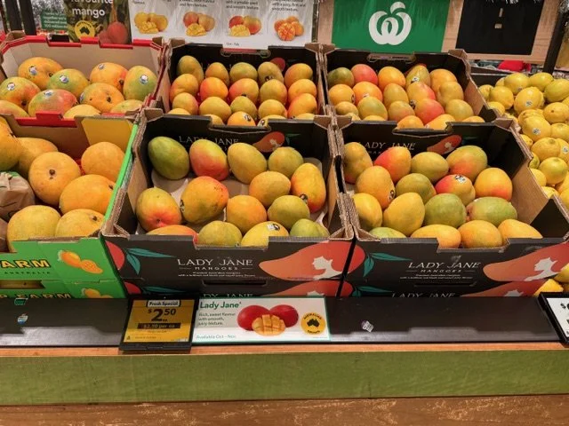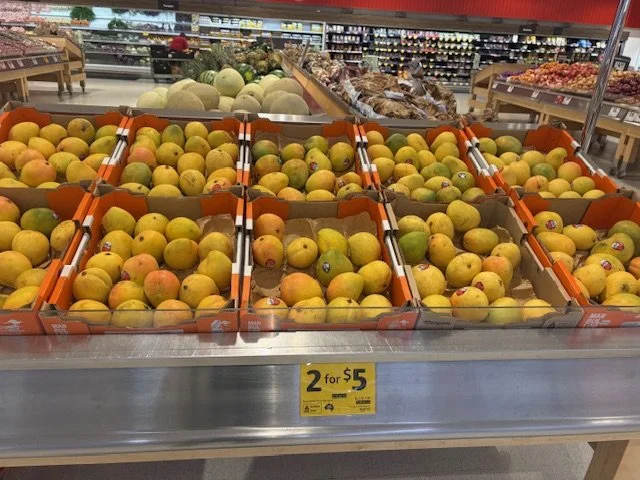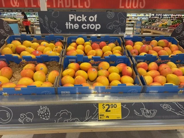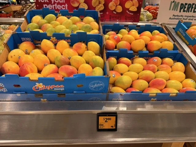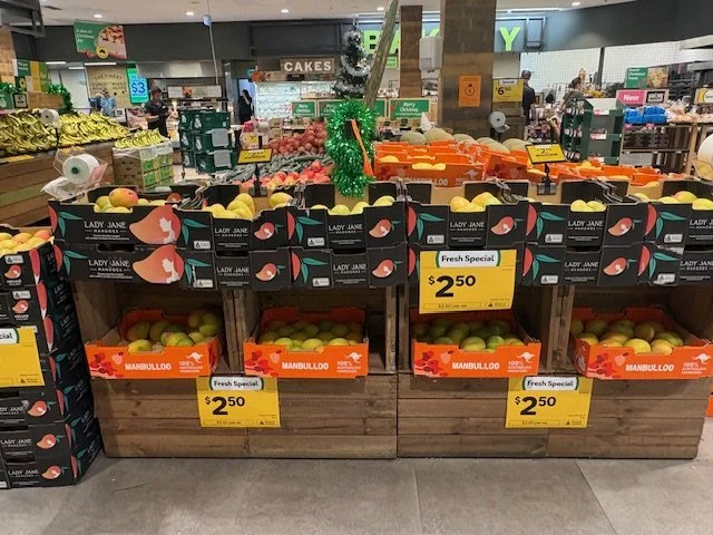 Everyone loves mango season, well almost everyone, the store displays are increasing with varietals each week and spacings. We thought we would capture a few images whilst we are out and about looking at avos and bananas. Hope you find this useful.