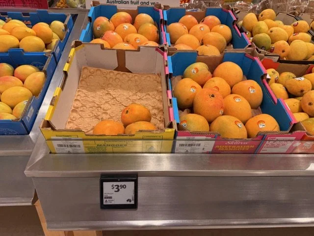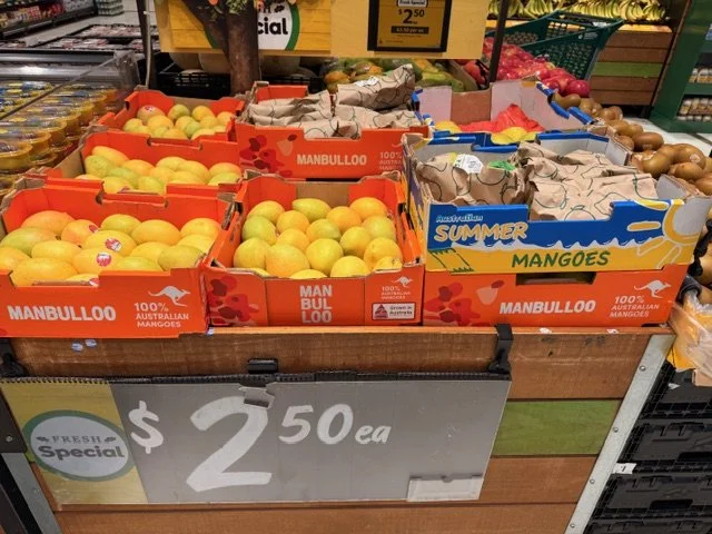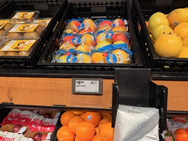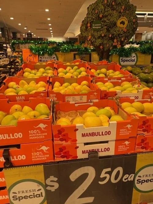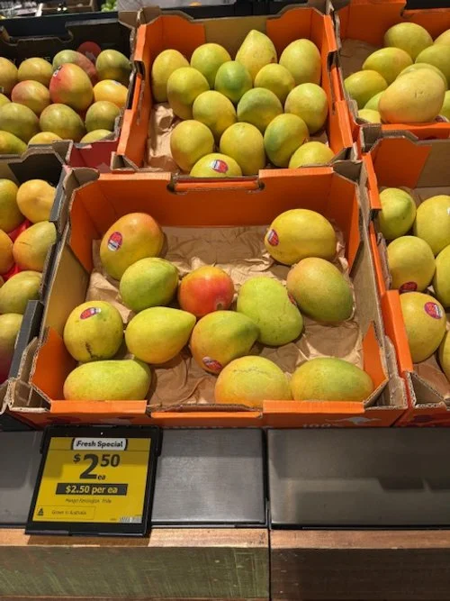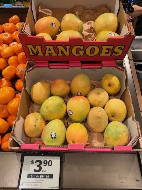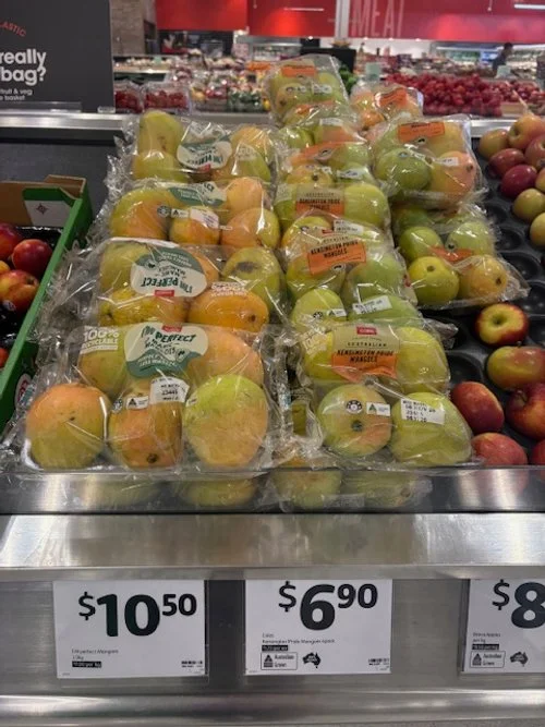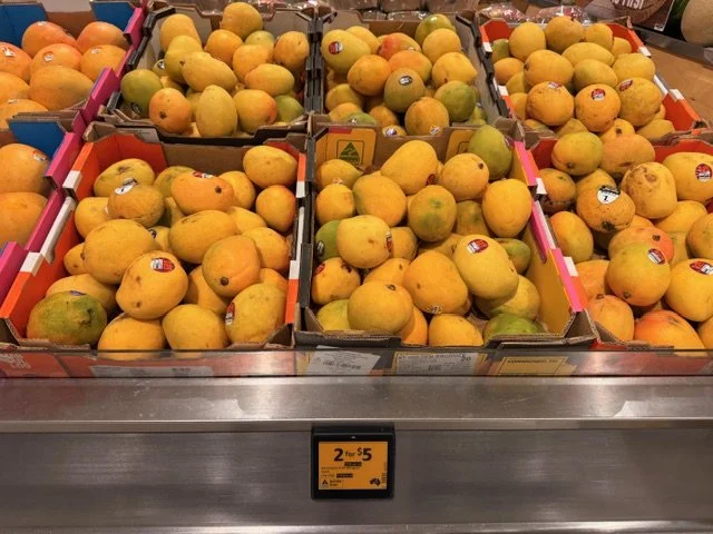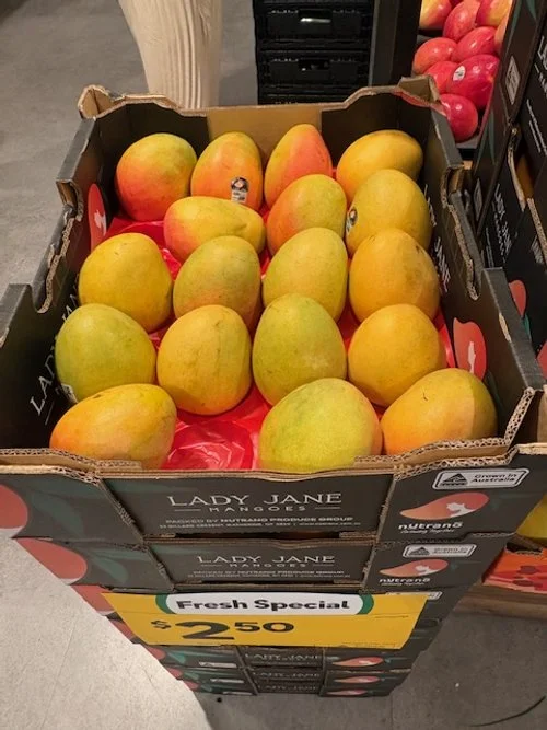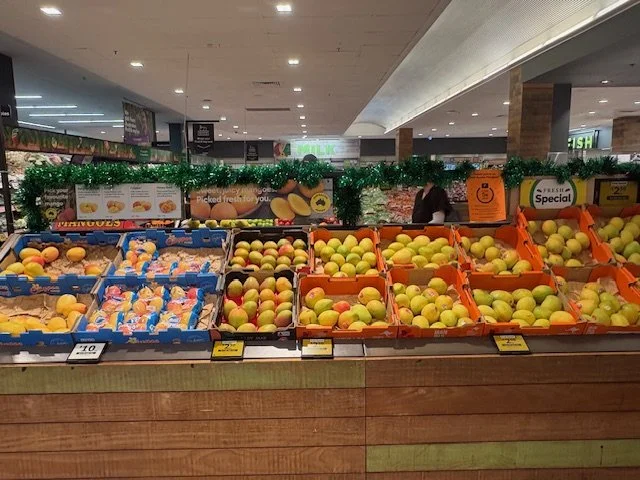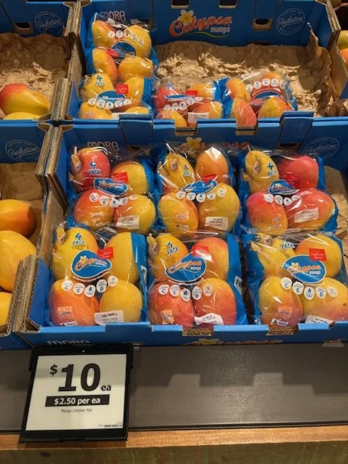 Everyone loves mango season, well almost everyone, the store displays are increasing with varietals each week and spacings. We thought we would capture a few images whilst we are out and about looking at avos and bananas. Hope you find this useful.