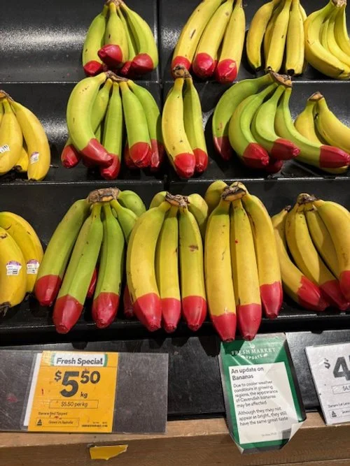 Lady Fingers at $9.00/kg and Red Tipped bananas at $5.50/kg on special. Organic at $6.50/kg.