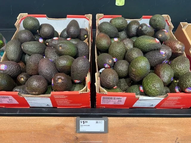 Ct 23/25 Hass ticketed at $1.29ea supplied by Avocado Collective.