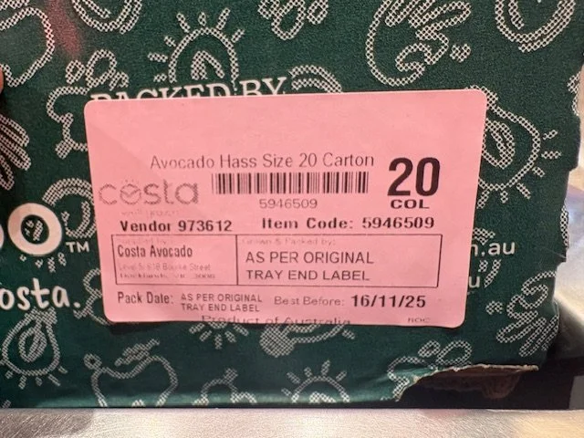 Hass Ct 25 priced $1.00ea supplies from Avocado Collective and Costa Avos. Fruit packed 22nd to 28th October so fruit age ranging 15 to 21 days from pack.