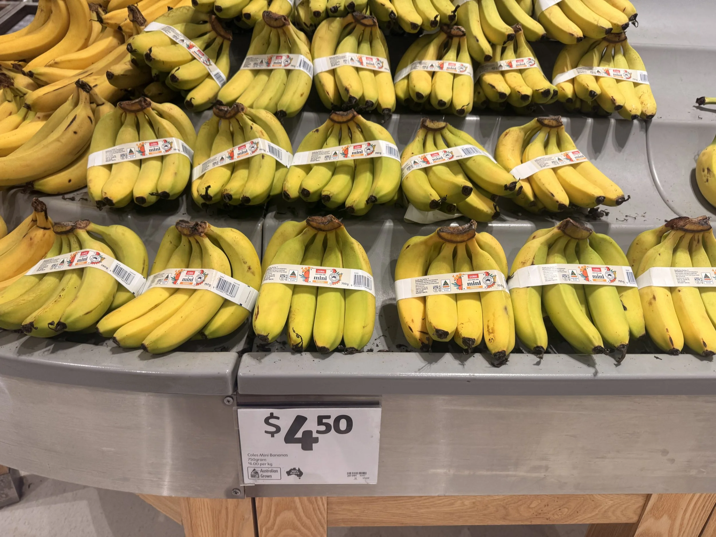 Cavendish on display $4.50/kg. Kids packs at $4.50ea.