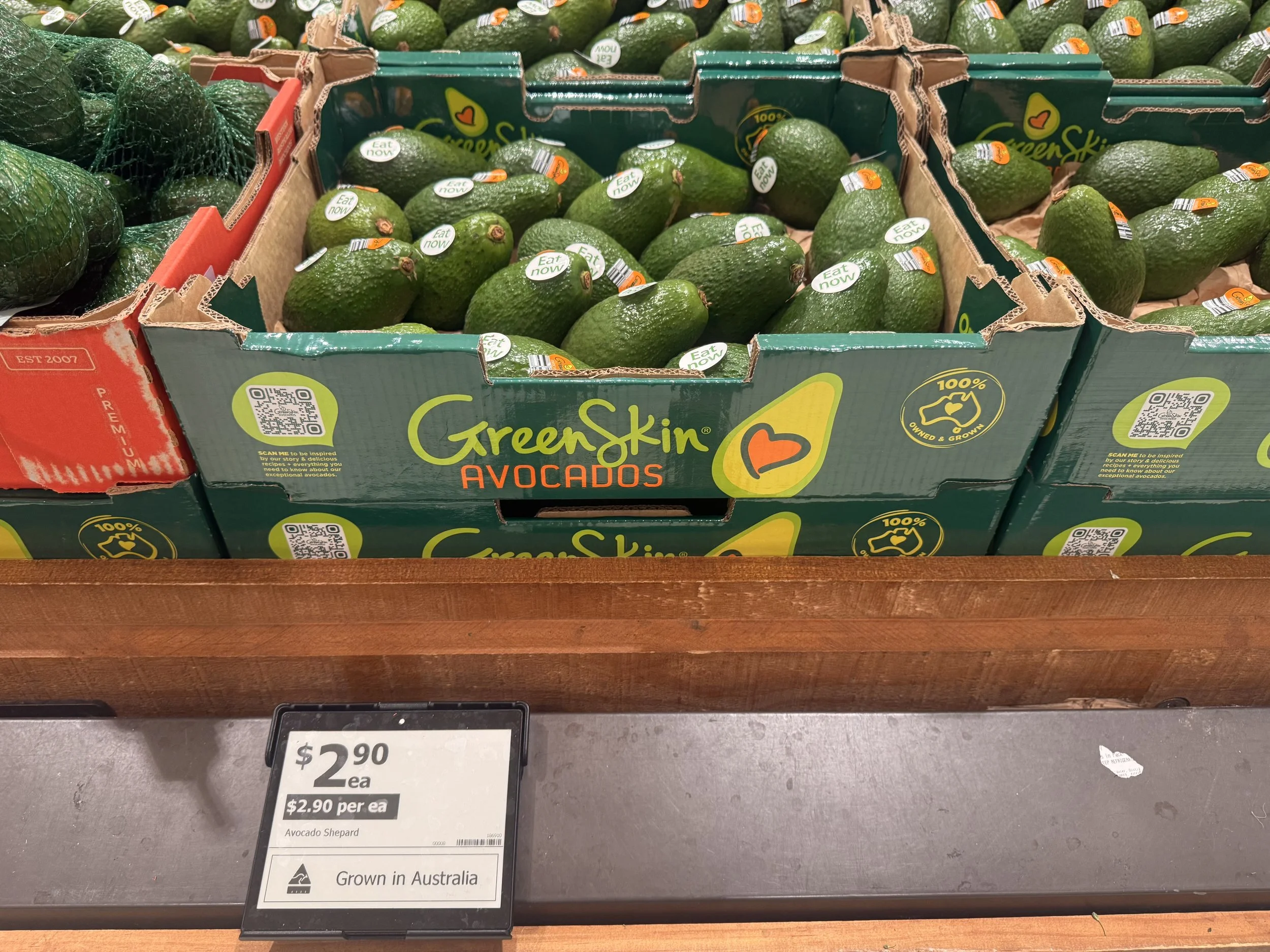 Hass in Ct 23 on display priced at $3.50ea and Shepard back at Woolworths in Ct 25 priced at $2.90ea. Fruit packed 15th-29th January so fruit age is 13-18 days old.