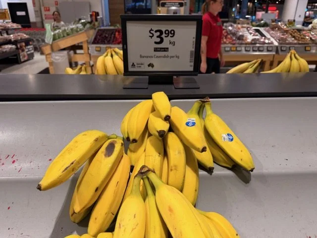 Retail ticket pricing in Queensland for cavendish bananas found as follows: Aldi’s banana ticket price at $3.99/kg; Woolies offered fruit at a ticket price of $4.00/kg; and Coles were offering fruit at $4.00/kg.