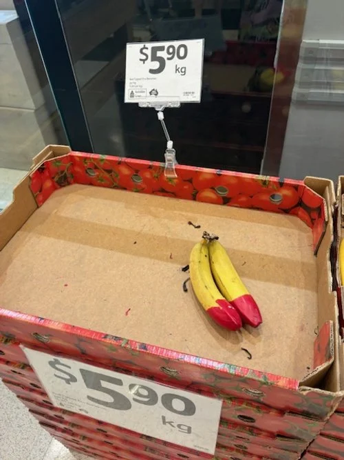 Red Tipped bananas at $5.90/kg and Lady Fingers at $9.00/kg. Organic at $6.00/kg.