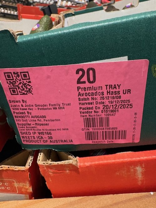 In terms of Avocado retailing in the major supermarkets in Qld this week, we saw pricing at - Aldi’s Hass at $2.19 each; Coles Qld stores visited had Hass avos at $2.50ea; and Woolworths were retailing Hass at $2.00ea.
