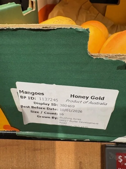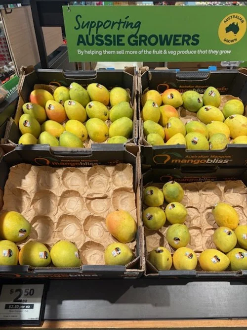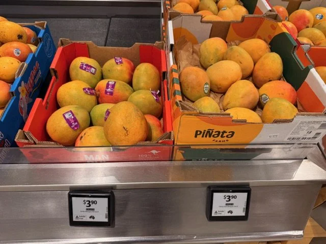 Everyone loves mango season, well almost everyone, the store displays post Christmas are still offering a range of varietals as can be seen below. We thought we would capture a few images whilst we are out and about looking at avos and bananas. Hope you find this useful.